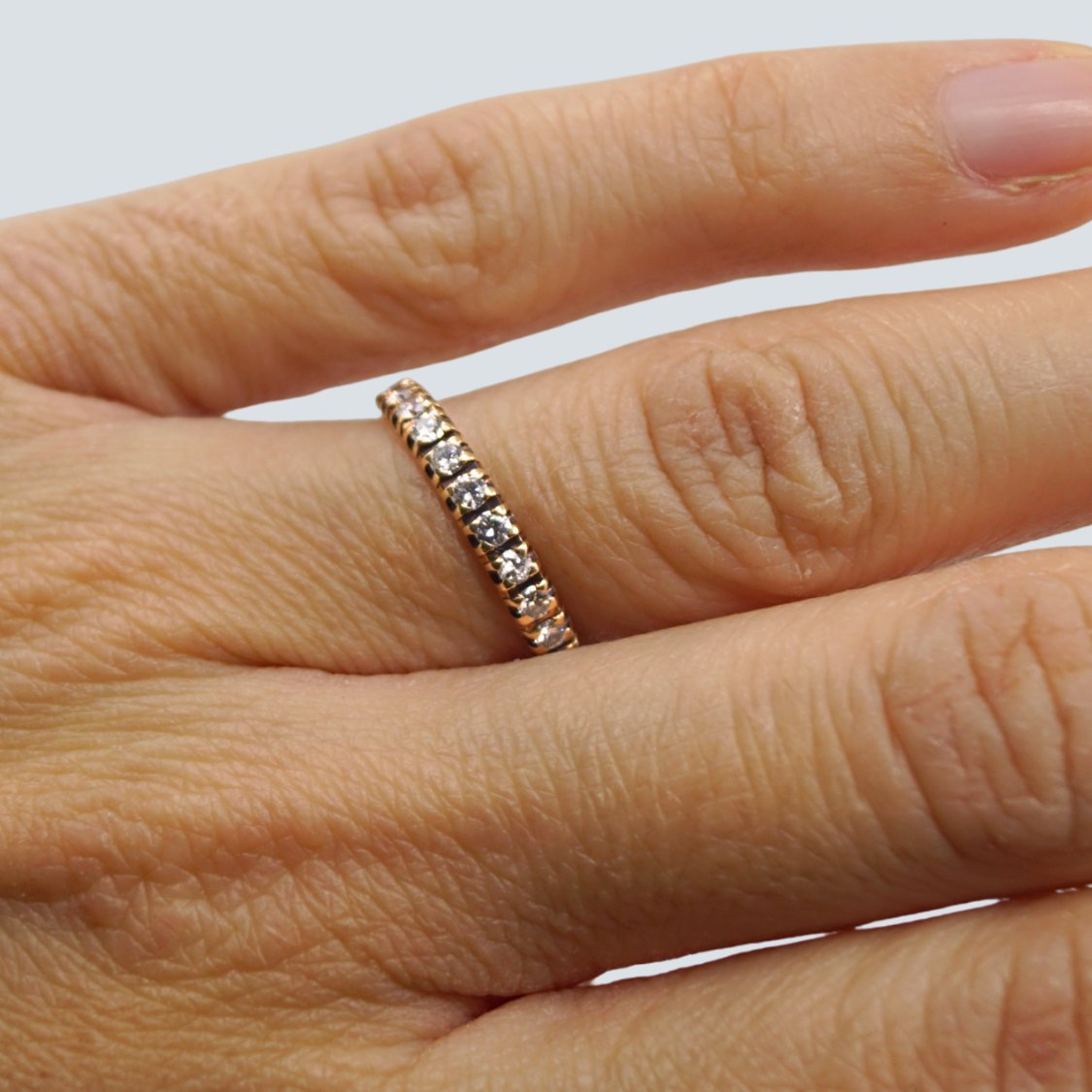 Erik Graugaard; Ring i 14 kt. guld, prydet med 12 diamanter, i alt 0.36 ct. Wesselton VS. Ring str. 53.Stemplet "EG 585".