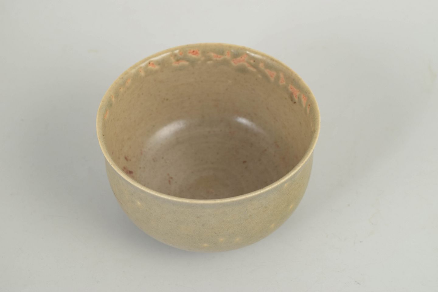 John Andersson for Höganäs, skål.Drejet skål i stentøj med afrundet form og let indadbøjet rand. Udført med lys, sandfarvet glasur med diskrete variationer og fine glasurspil langs kanten. Signeret i bunden, produceret hos Höganäs i 1970’erne.