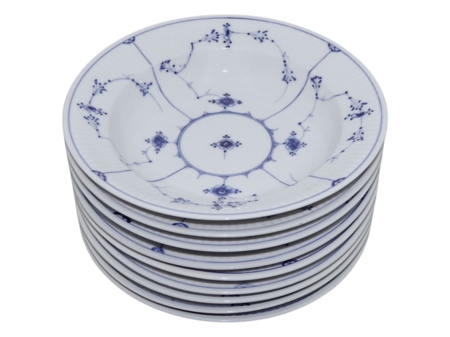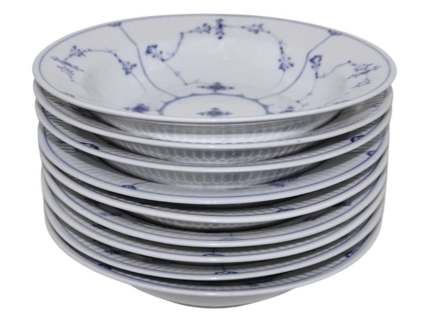 Royal Copenhagen Musselmalet Riflet, lille dyb tallerken.Disse er produceret før 1894.