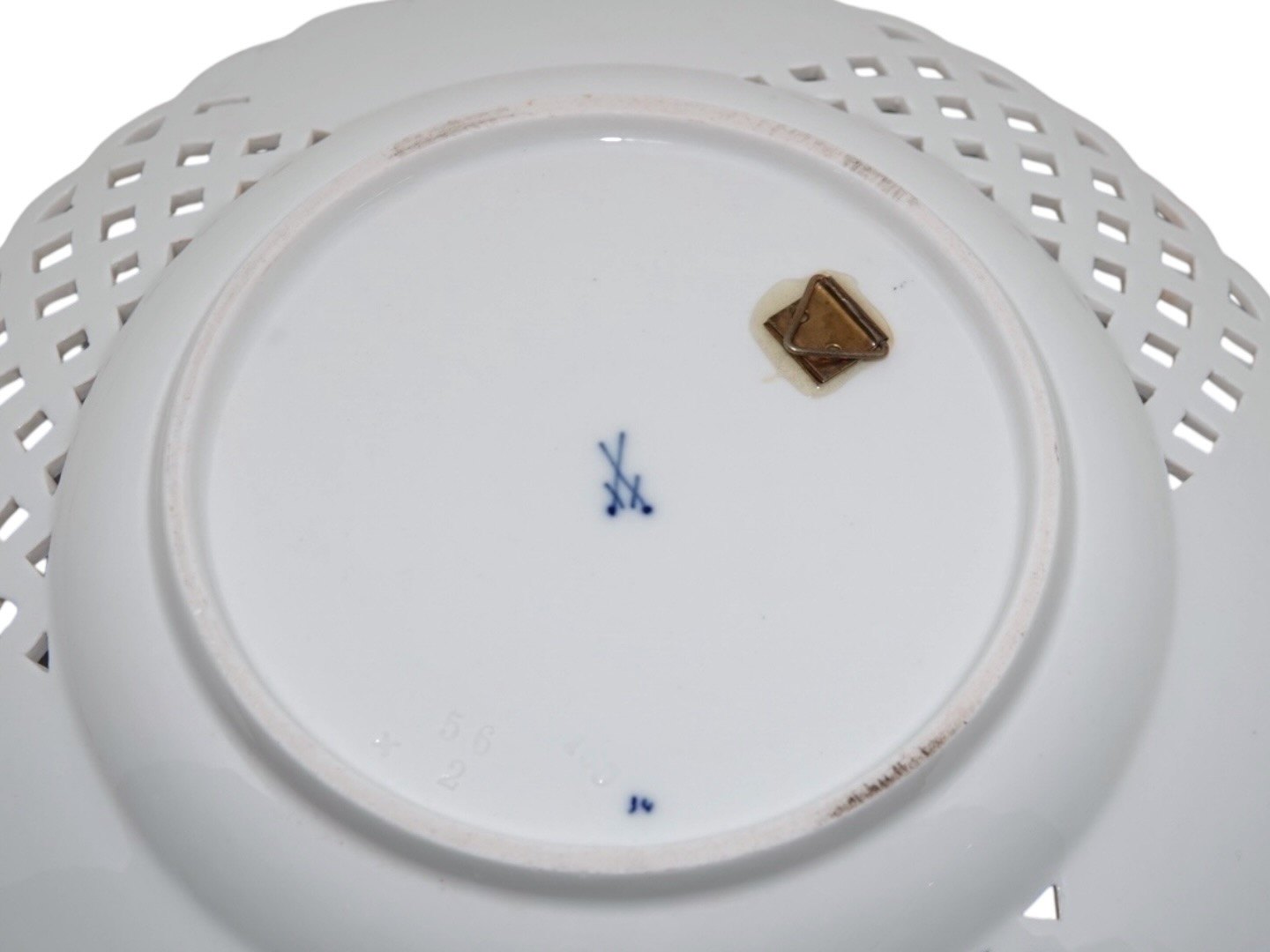 Meissen Tyskland, Blue Onion tallerken med dobbeltblonde og guldkant.Diameter 23,5 cm.