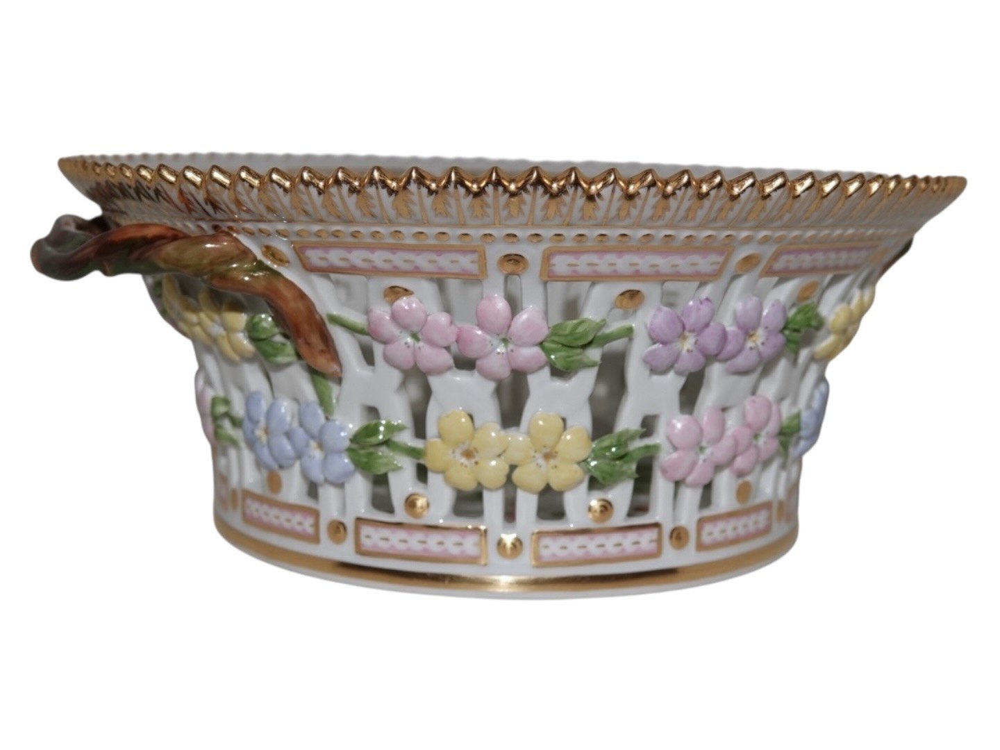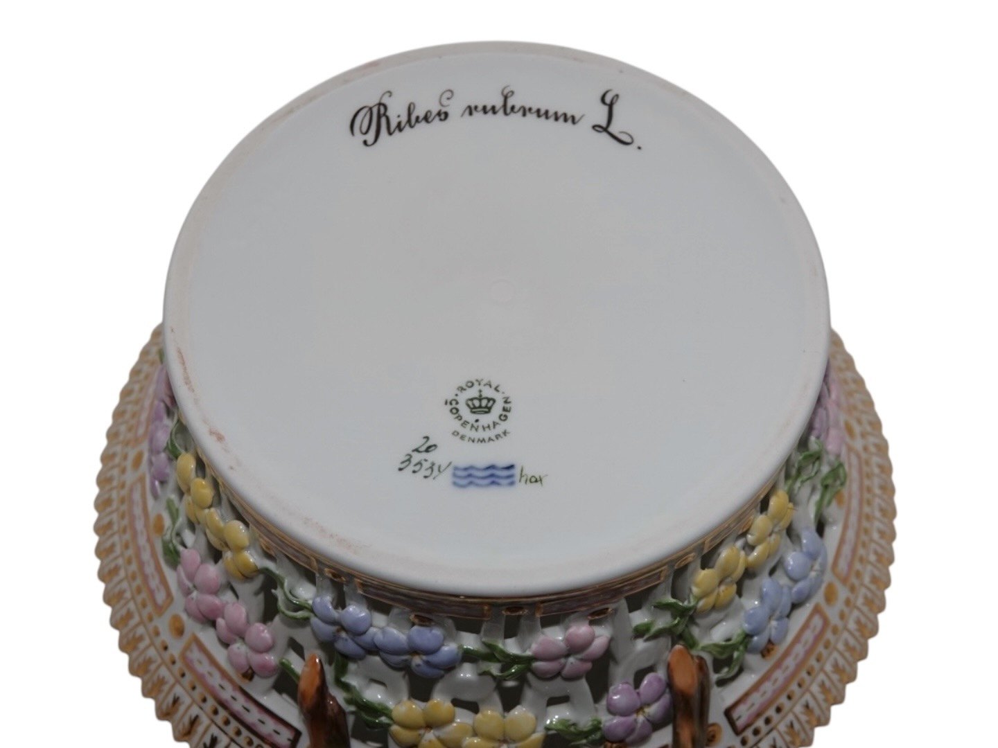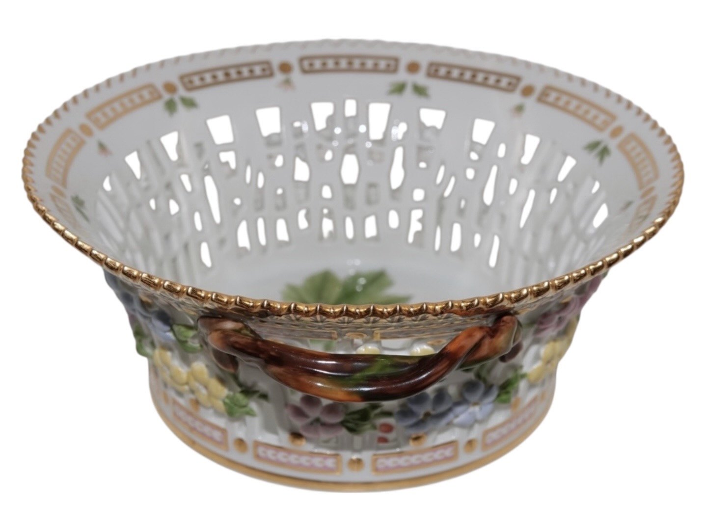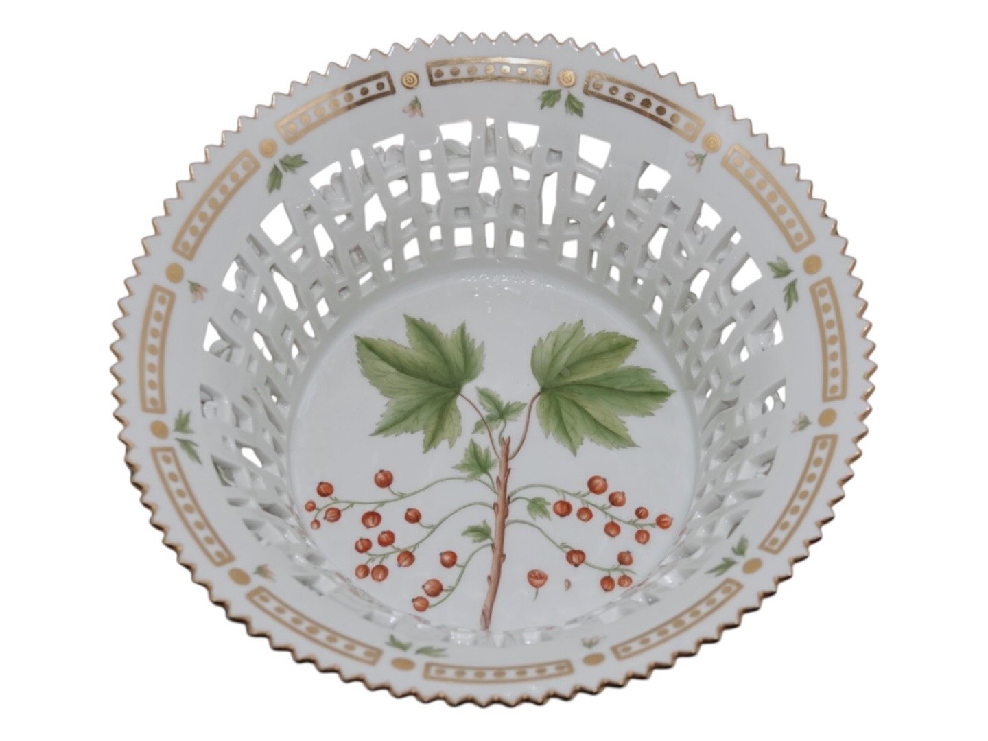 Royal Copenhagen Flora Danica, rund frugtkurv.Dekorationsnummer 20/3534.