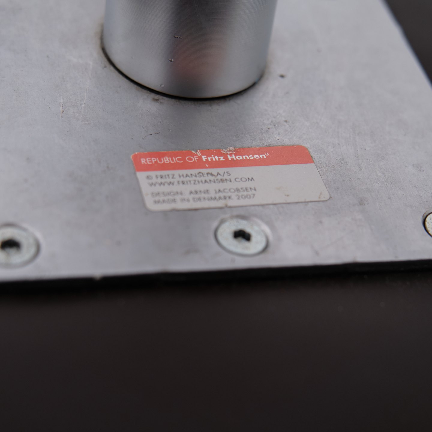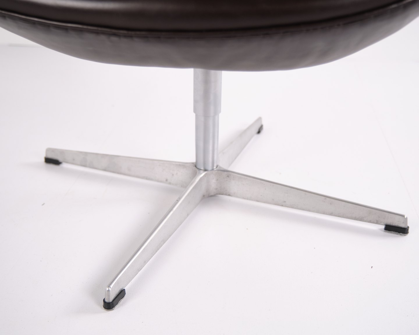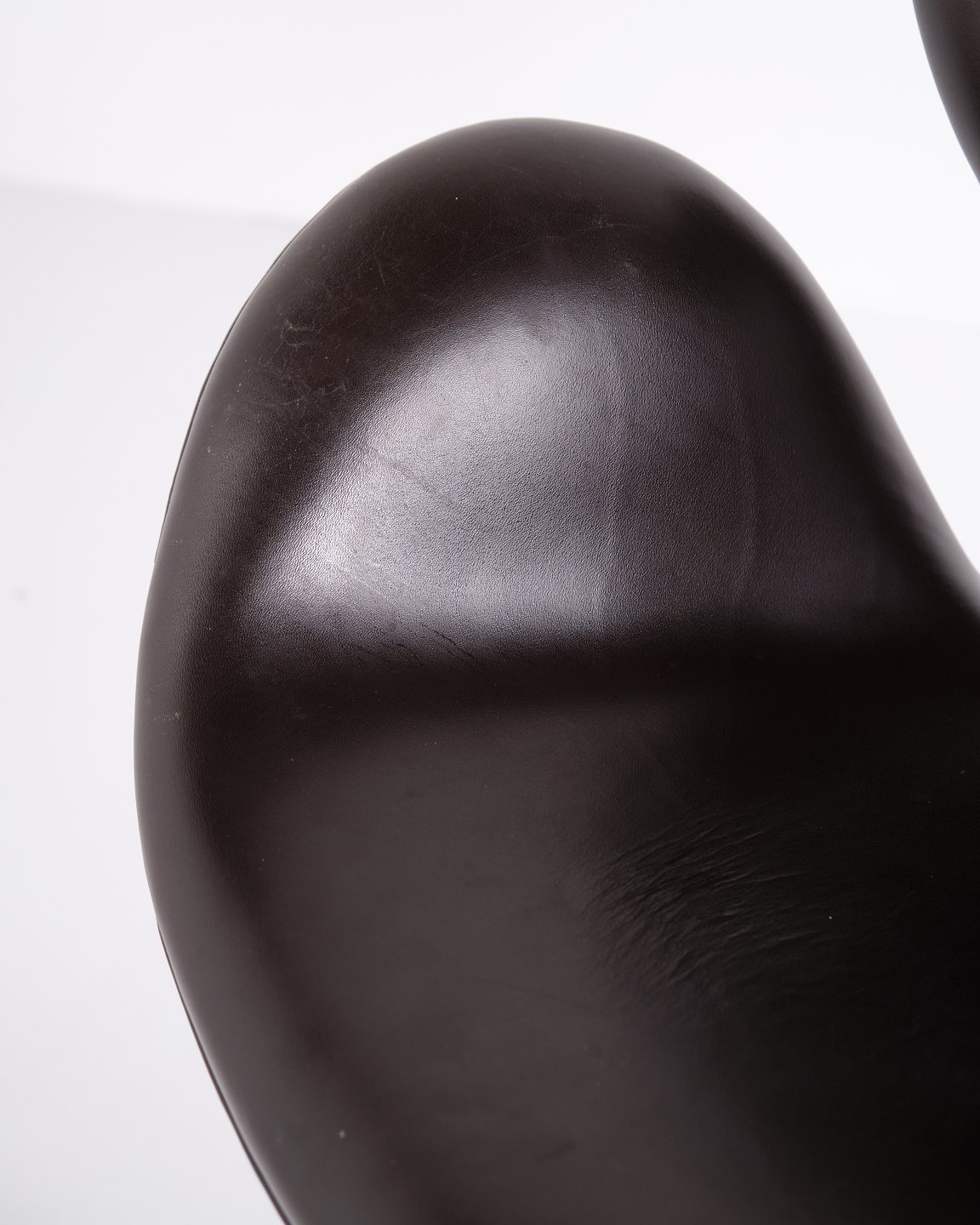 Swan-Sessel Modell 3320, entworfen von Arne Jacobsen und produziert von Fritz Hansen. Ausgeführt in braunem Leder. Produziert im Jahr 2007. Ein ikonischer Klassiker des dänischen Designs.— Designer: Arne Jacobsen