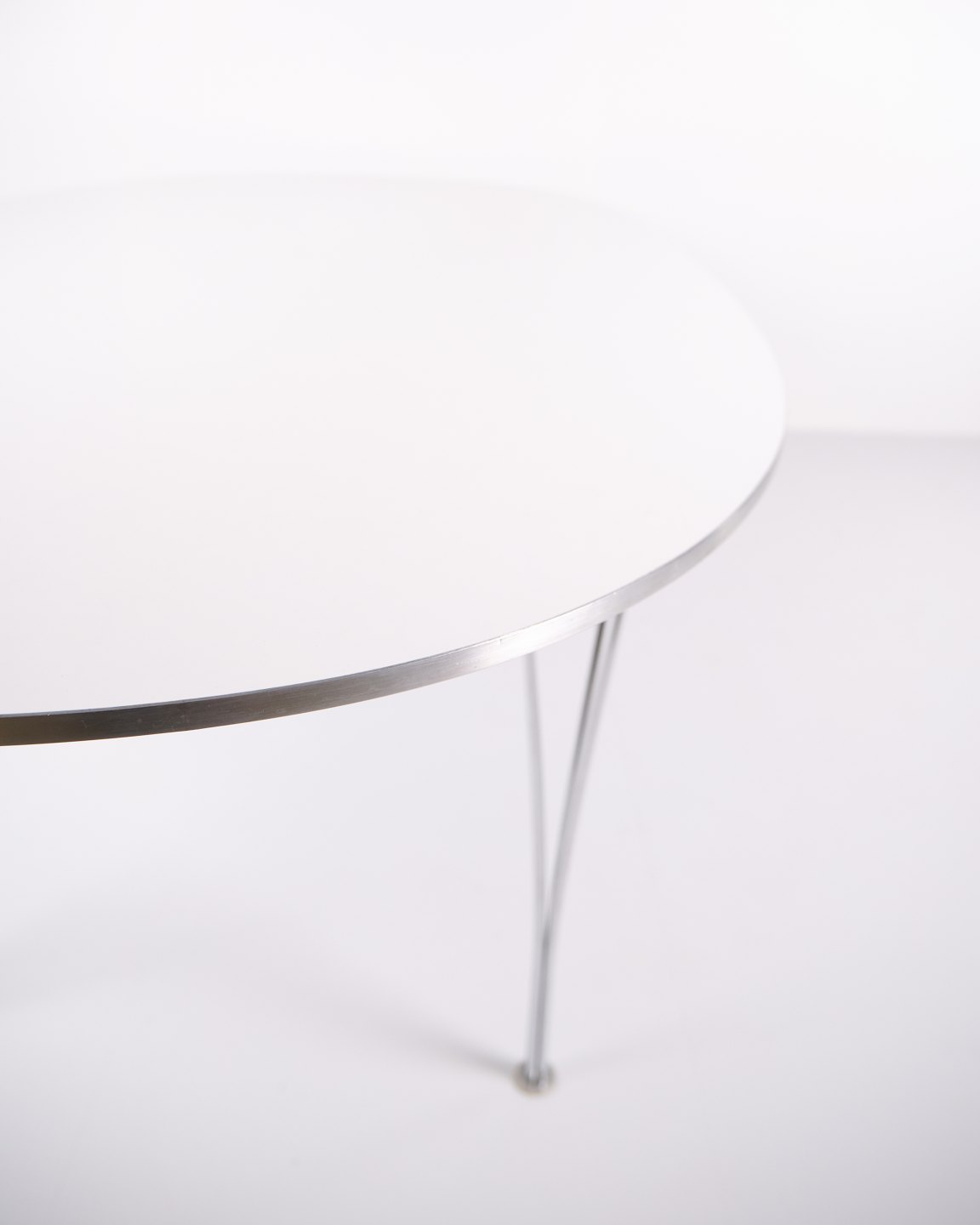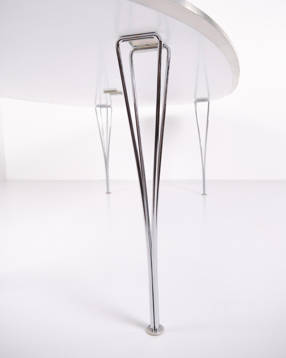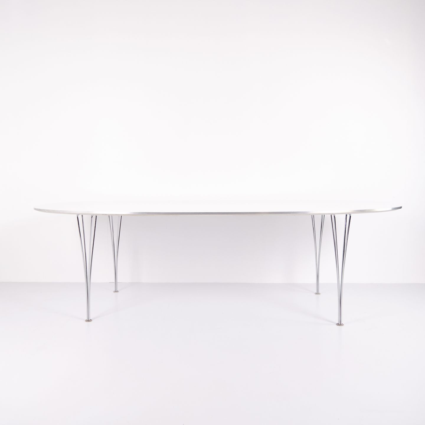 Super Ellipse Esstisch Modell B614, entworfen von Piet Hein, Bruno Mathsson und Arne Jacobsen für Fritz Hansen. Weißes Laminat. Ikonischer dänischer Designklassiker.— Herkunft: Dänemark