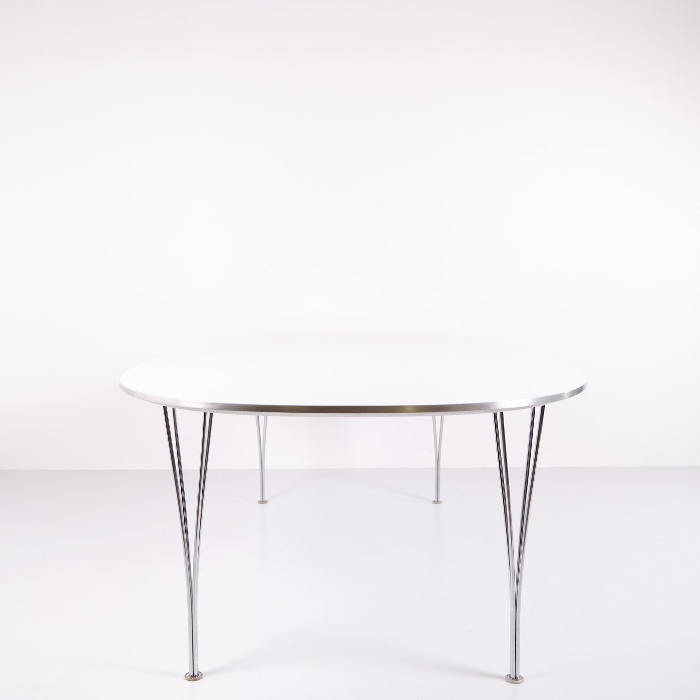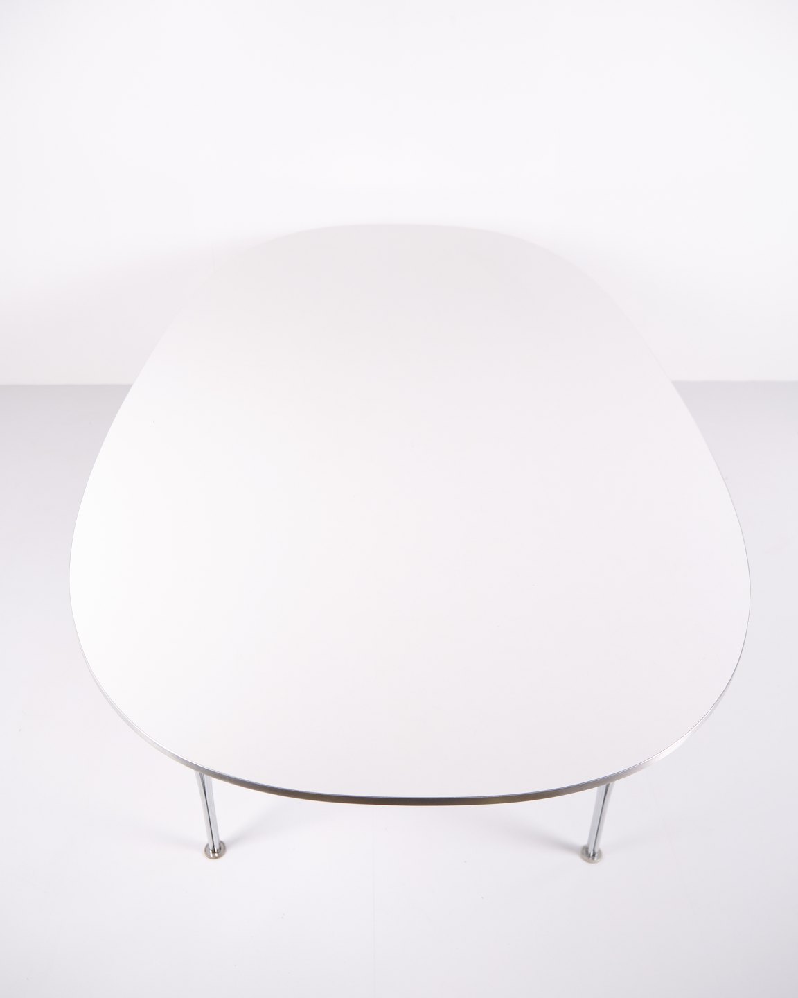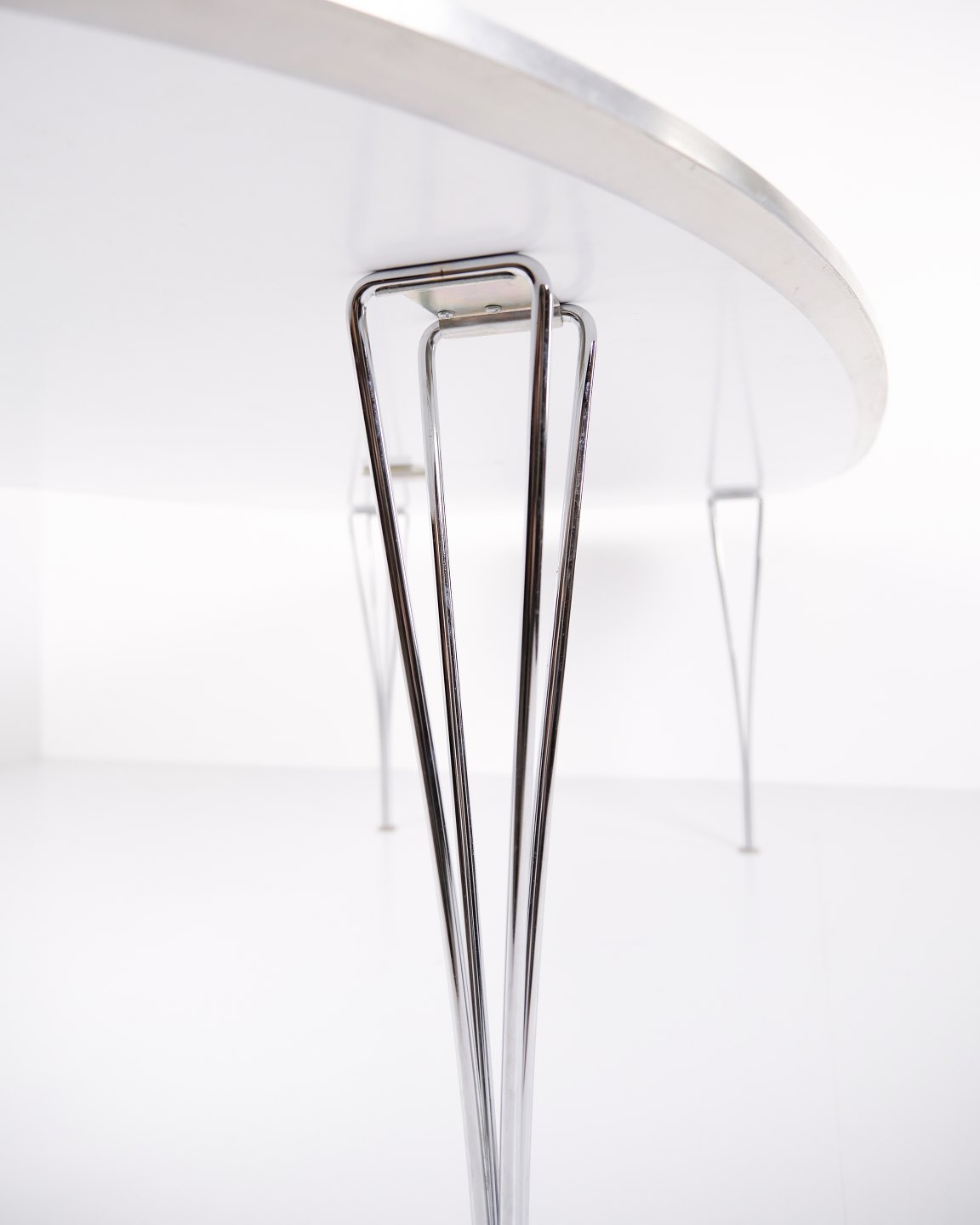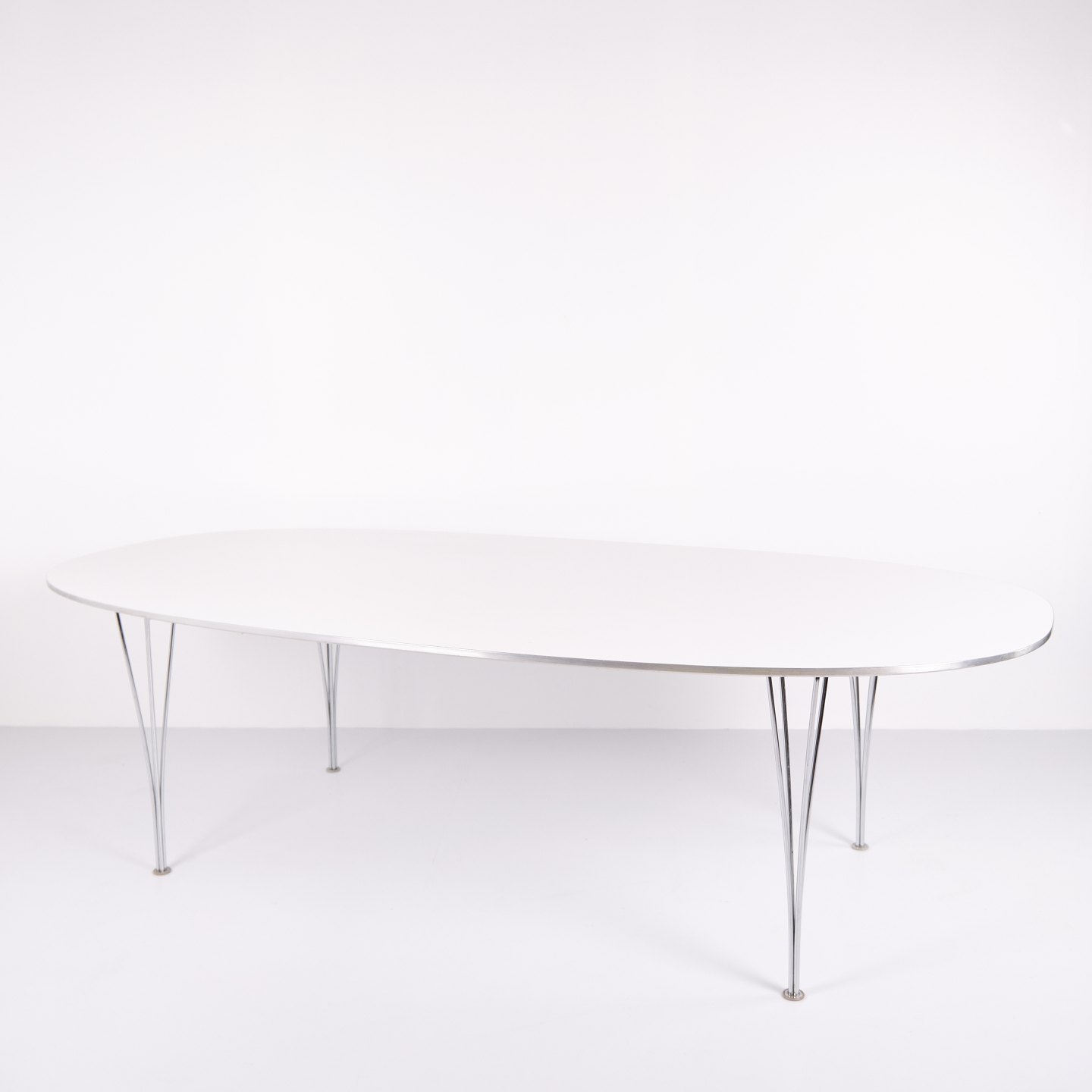 Super Ellipse Esstisch Modell B614, entworfen von Piet Hein, Bruno Mathsson und Arne Jacobsen für Fritz Hansen. Weißes Laminat. Ikonischer dänischer Designklassiker.— Herkunft: Dänemark