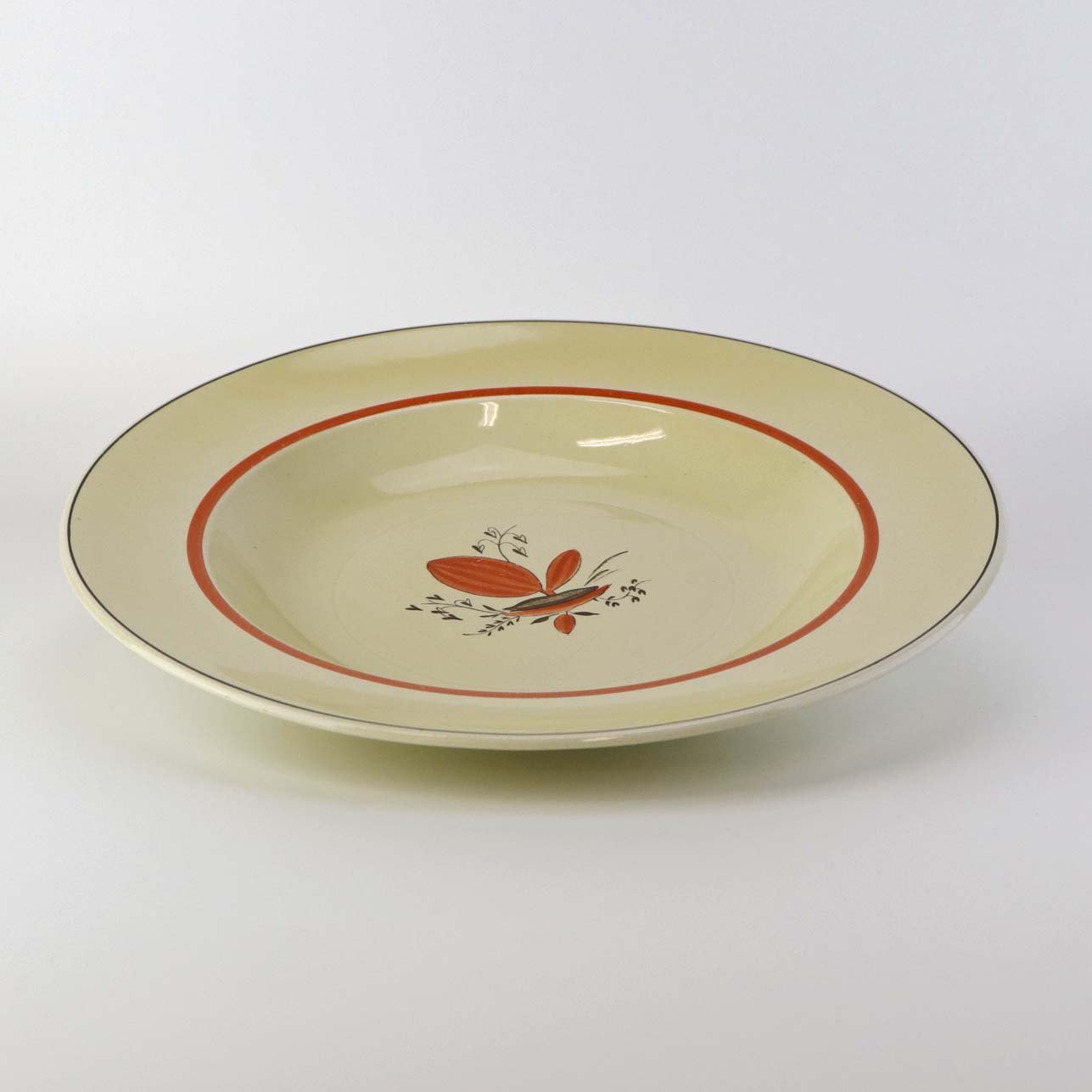Dyb suppetallerken i fajance fra stellet Silkeborg fremstillet i perioden 1937-1939Formgiver Thorkild Olsen