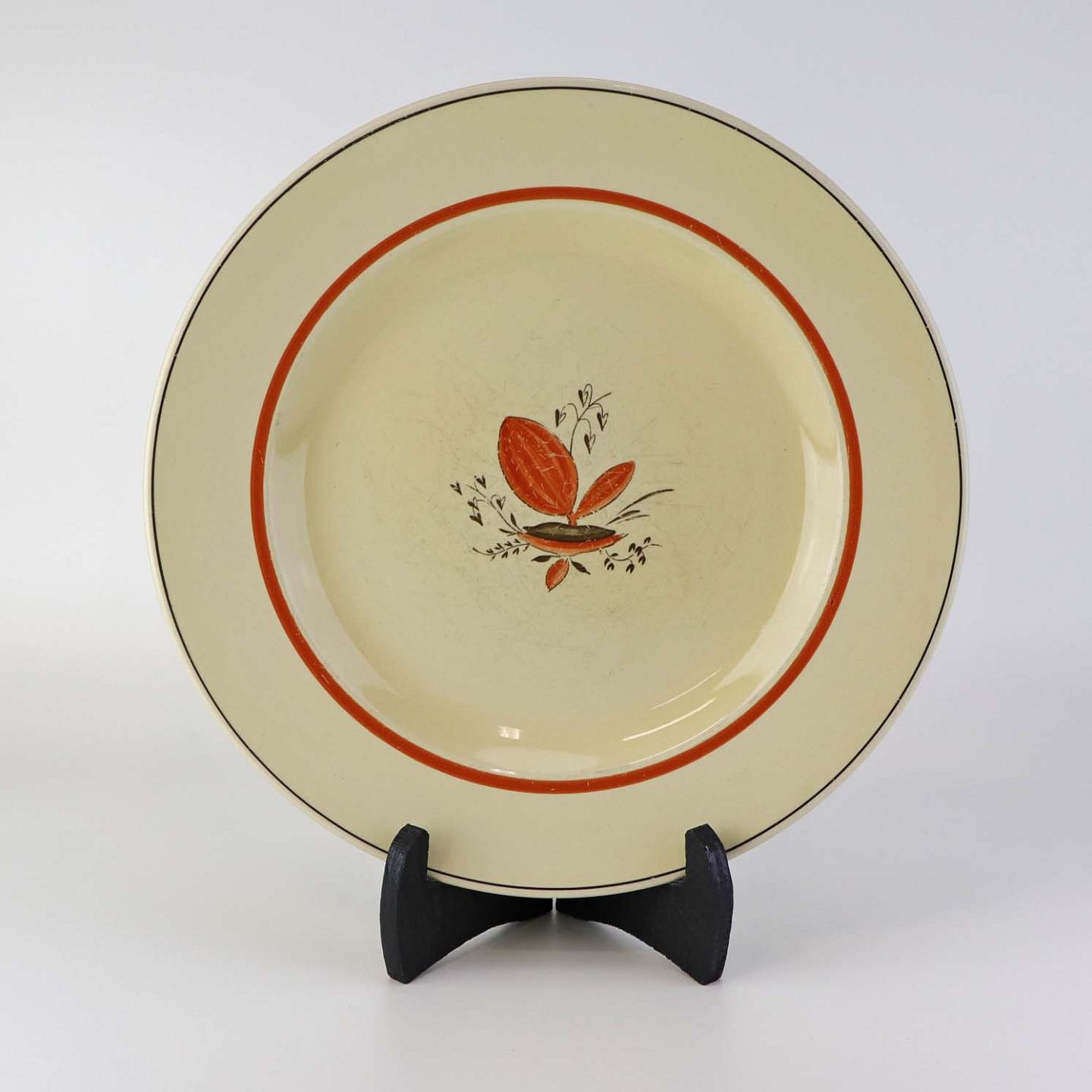 Fremstår med brugsspor på dekorationen og spor efter brug i bunden af tallerknen.