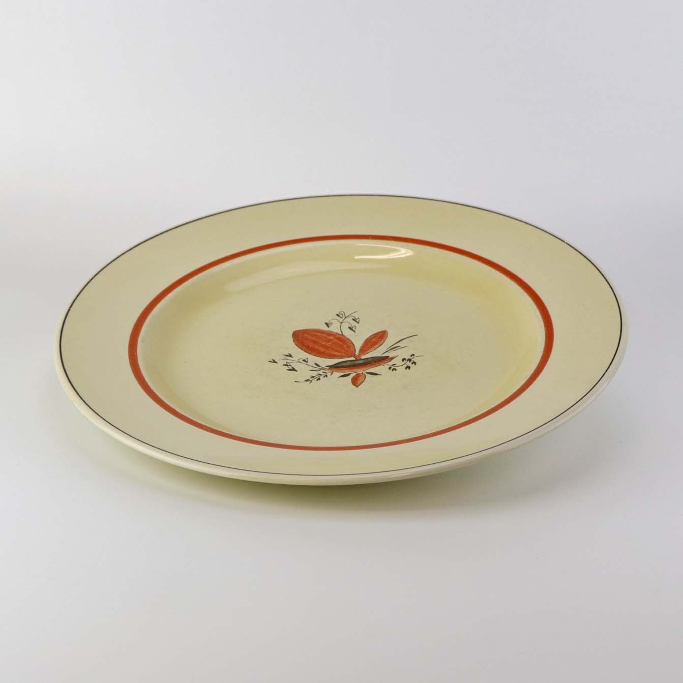 Flad middagstallerken i fajance fra stellet Silkeborg fremstillet i perioden 1937-1939Formgiver Thorkild Olsen