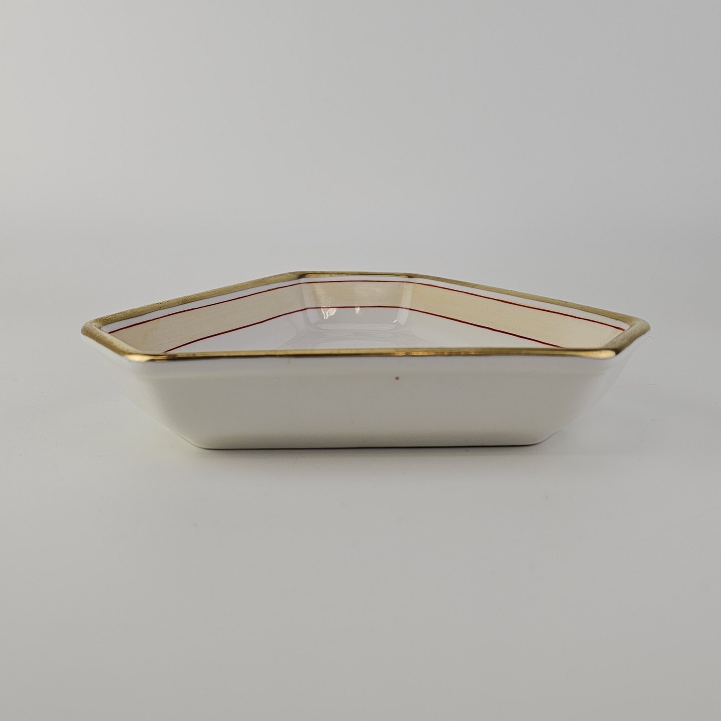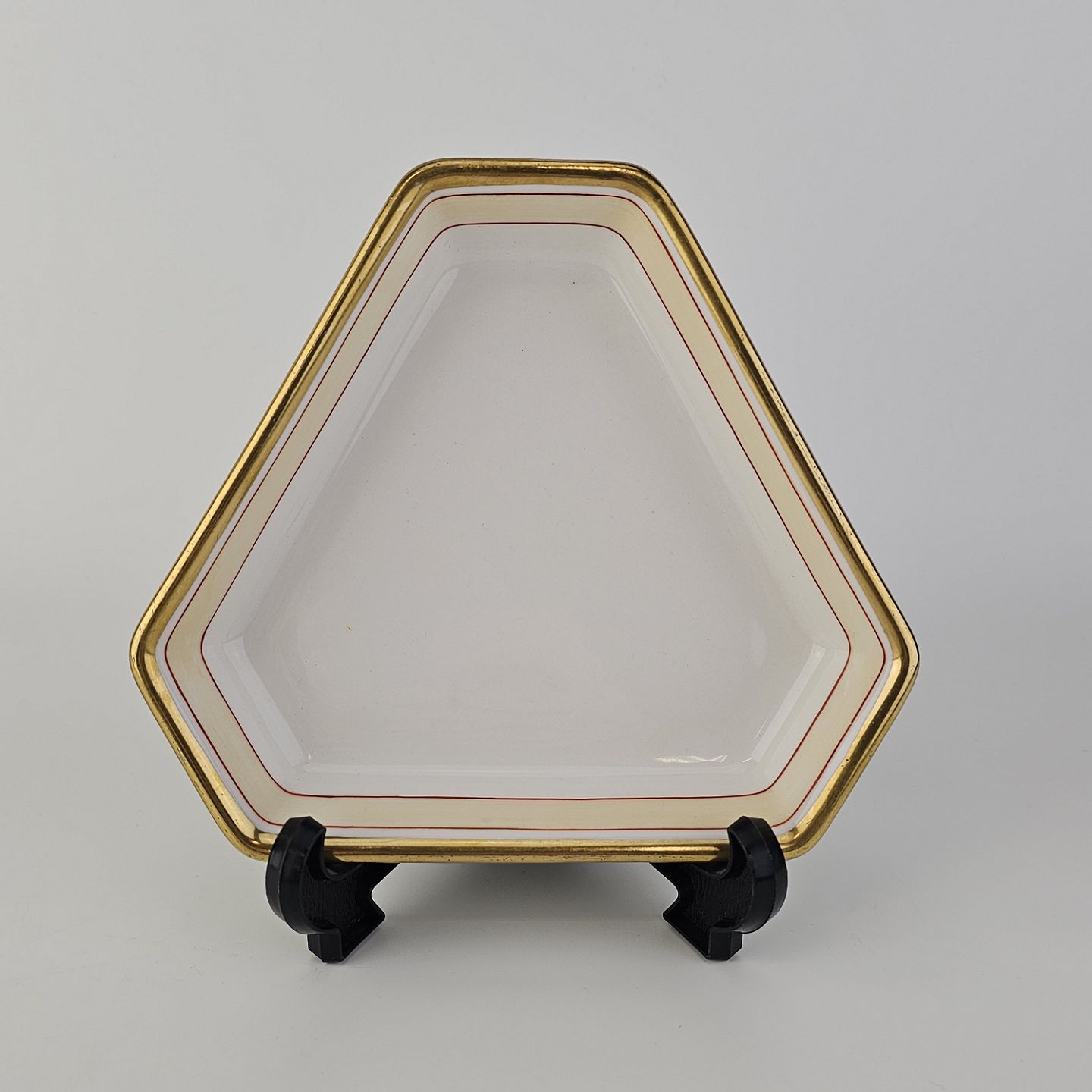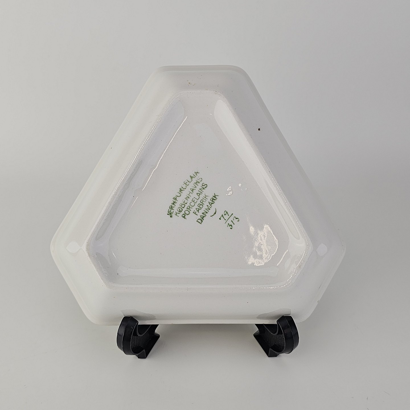 Trekantet fad i kongeligt porcelæn fra stellet Det spanske stel.Nr. 79/313 underfad til salt, peber og sennep.