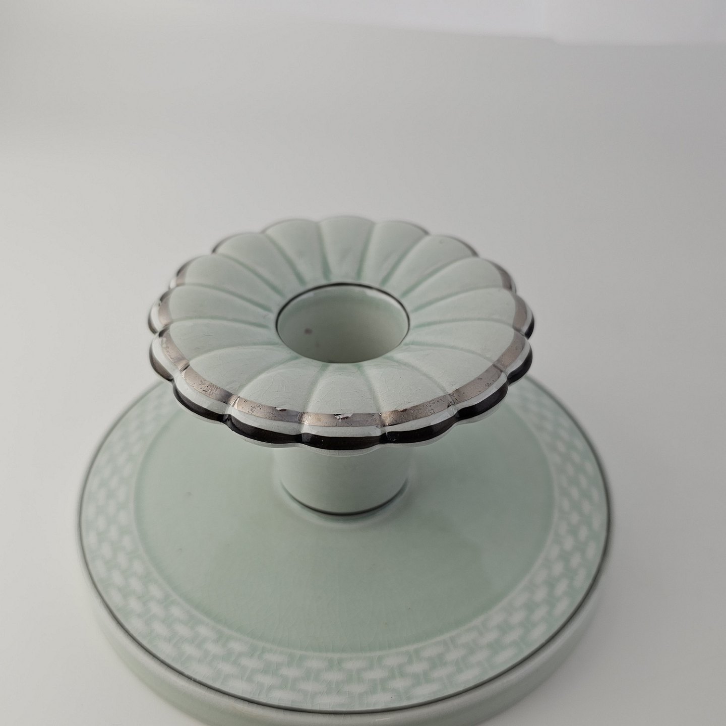 Lav lysestage i fajance fra stellet SaltholmFormgiver Thorkild Olsen