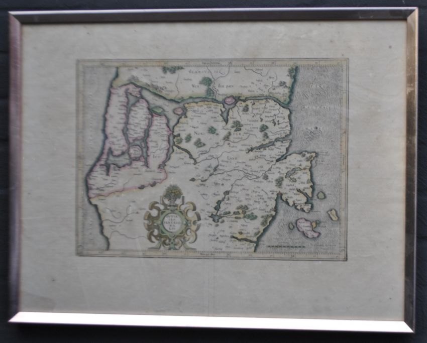 Mercator, Gerardus (1512–1594) Deutschland/Flandern: Spezialkarte von Mitteljütland. Handkolorierter Kupferstich. Signiert im Druck. Erschienen 1595. Hier: Französische Ausgabe von 1607 oder 1609. 29 × 41 cm.