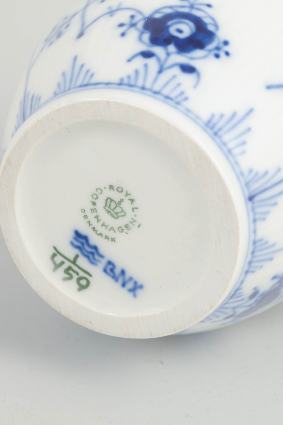 Royal Copenhagen, flødekande, Musselmalet riflet.Beschreibung: