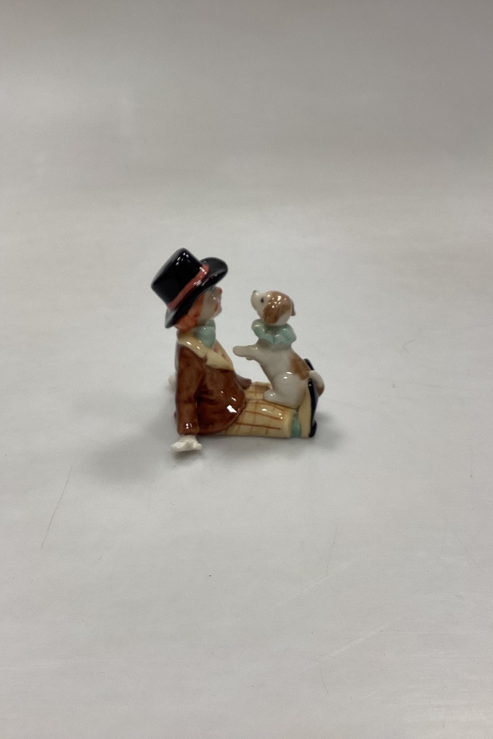 Royal Copenhagen Figur - Den Lille Klovn med Hund No. 212. Figur fra Mini Cirkus Kollektionen. Designet af Svend Vestergaard fra 2015-2019.Måler 6,5 cm / 2,56 in.