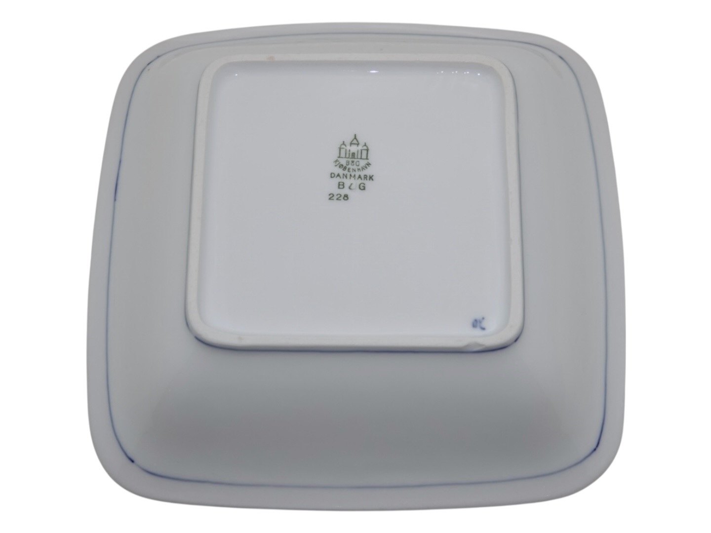 Bing & Grøndahl Empire, sjælden lille firkantet skål.Af fabriksmærket kan det udledes, at denne er fra mellem 1948 og 1952.
