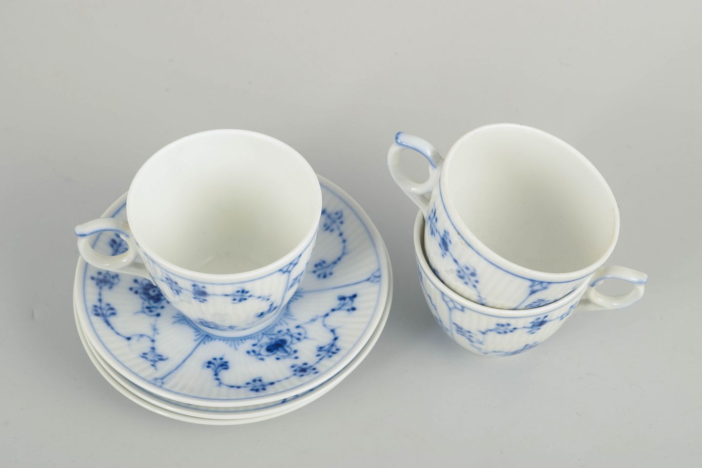Royal Copenhagen, Musselmalet riflet kaffekopper med tilhørende underkopper, sæt af 3.Beschreibung: