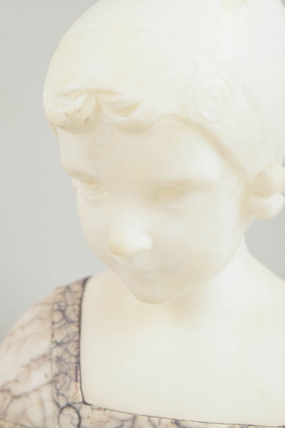 P. Braun, skønvirke buste. Tysk billedhugger.Fin buste i hvid marmor med blødt modelleret pigeportræt og lav sokkel i åretegnet marmor.