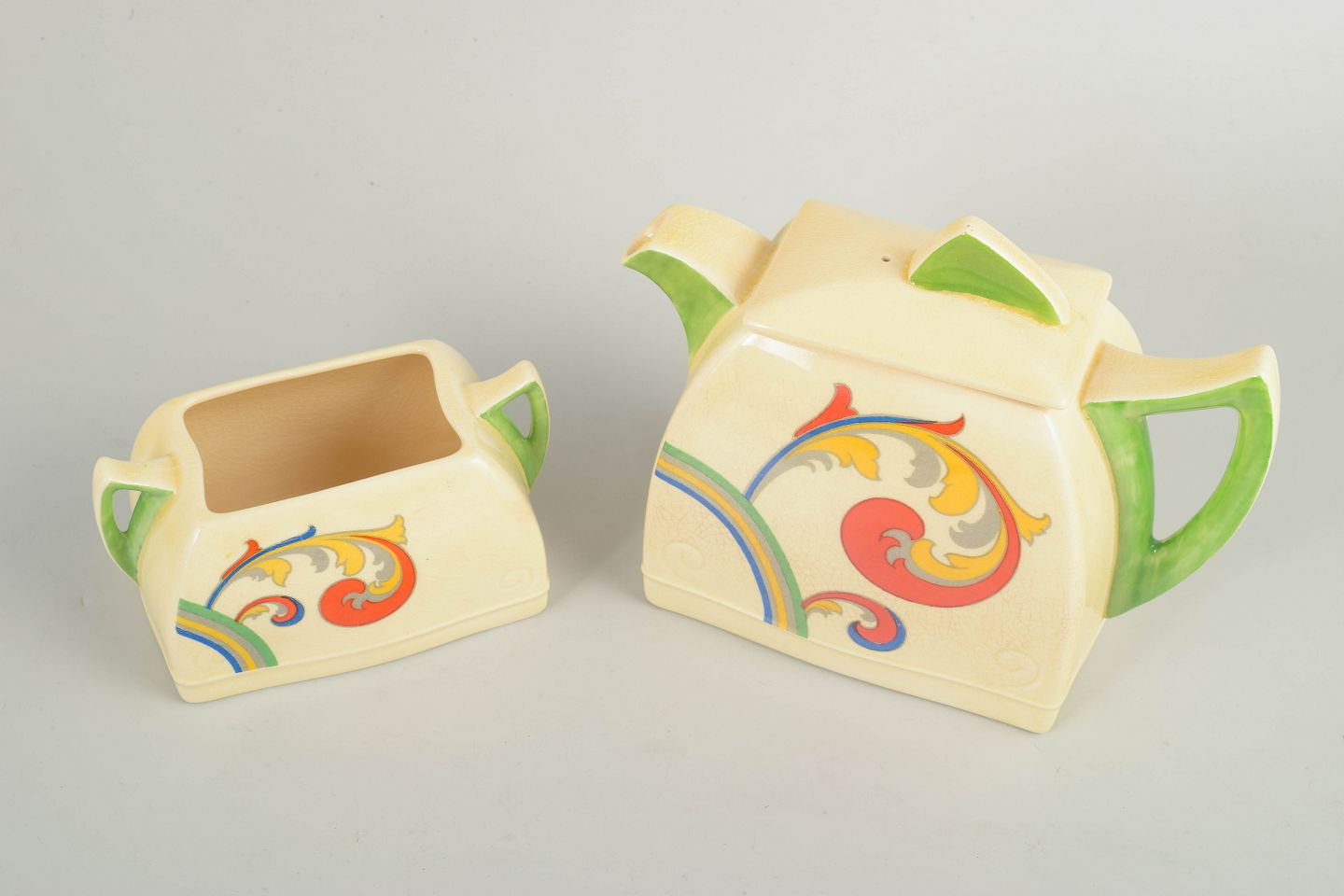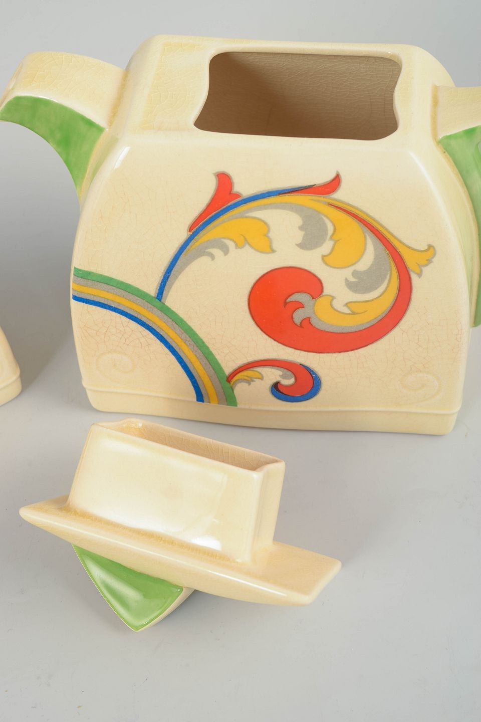 Clarice Cliff for Royal Doulton, tekande og sukkerskål.Beschreibung: