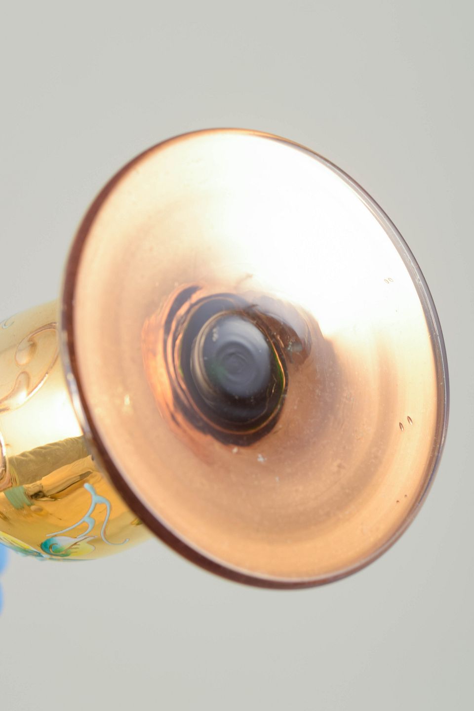 Materiale: Glas med guldfarvet dekoration og emaljemaling.