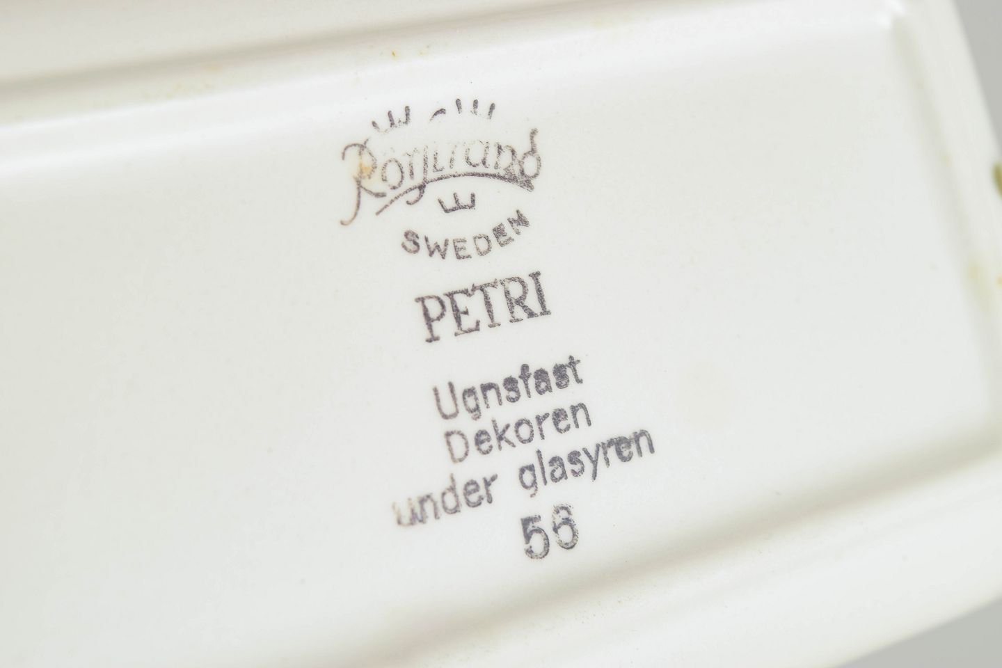 Rörstrand var en af Sveriges ældste og mest anerkendte porcelænsfabrikker, grundlagt i 1726. I midten af det 20. århundrede blev fabrikken internationalt kendt for sine farverige og moderne dekorer, som kombinerede skandinavisk enkelhed med kunstnerisk humor. “Petri” serien er et eksempel på tidens legende design med inspiration fra natur og grafiske former.