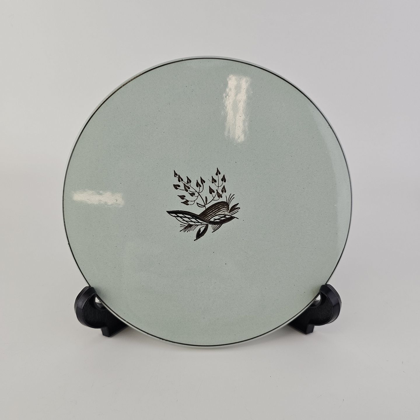 Stel i lysegrøn fajance med natur dekoration og flettet kant