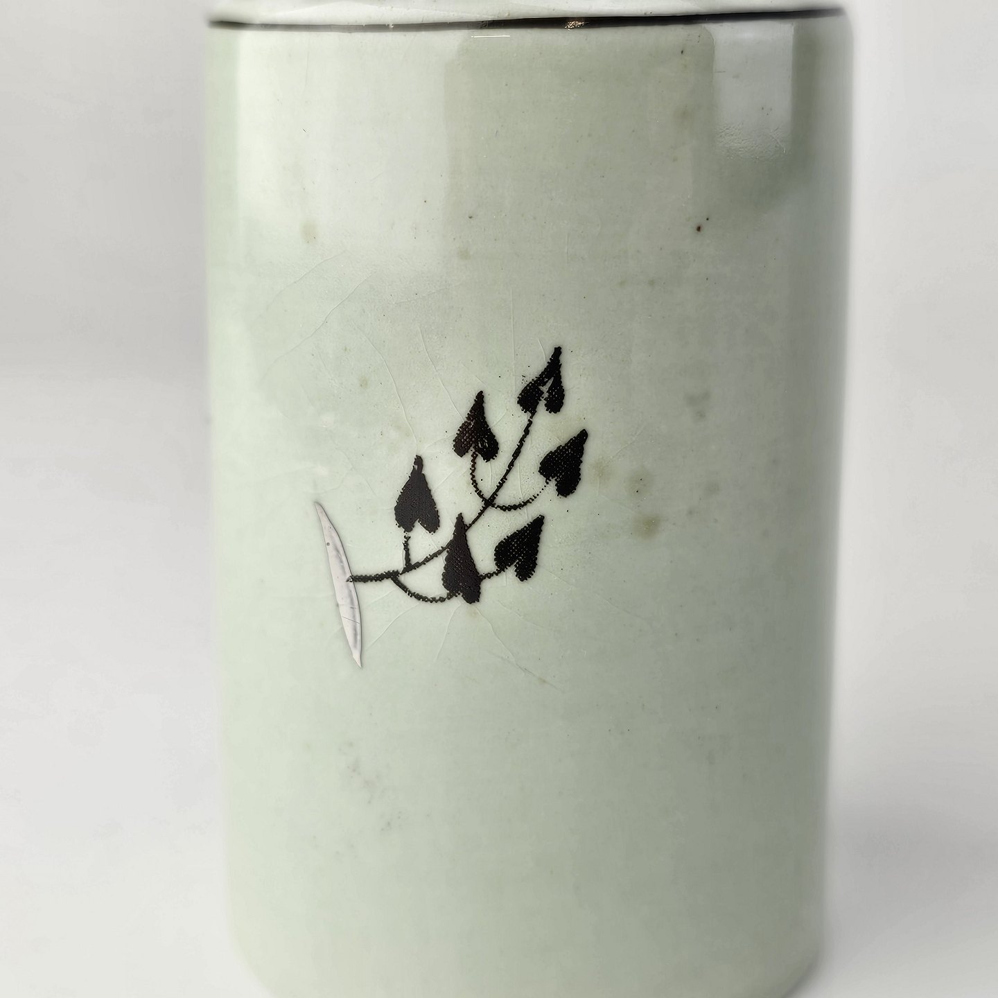 Stel i lysegrøn fajance med natur dekoration og flettet kant
