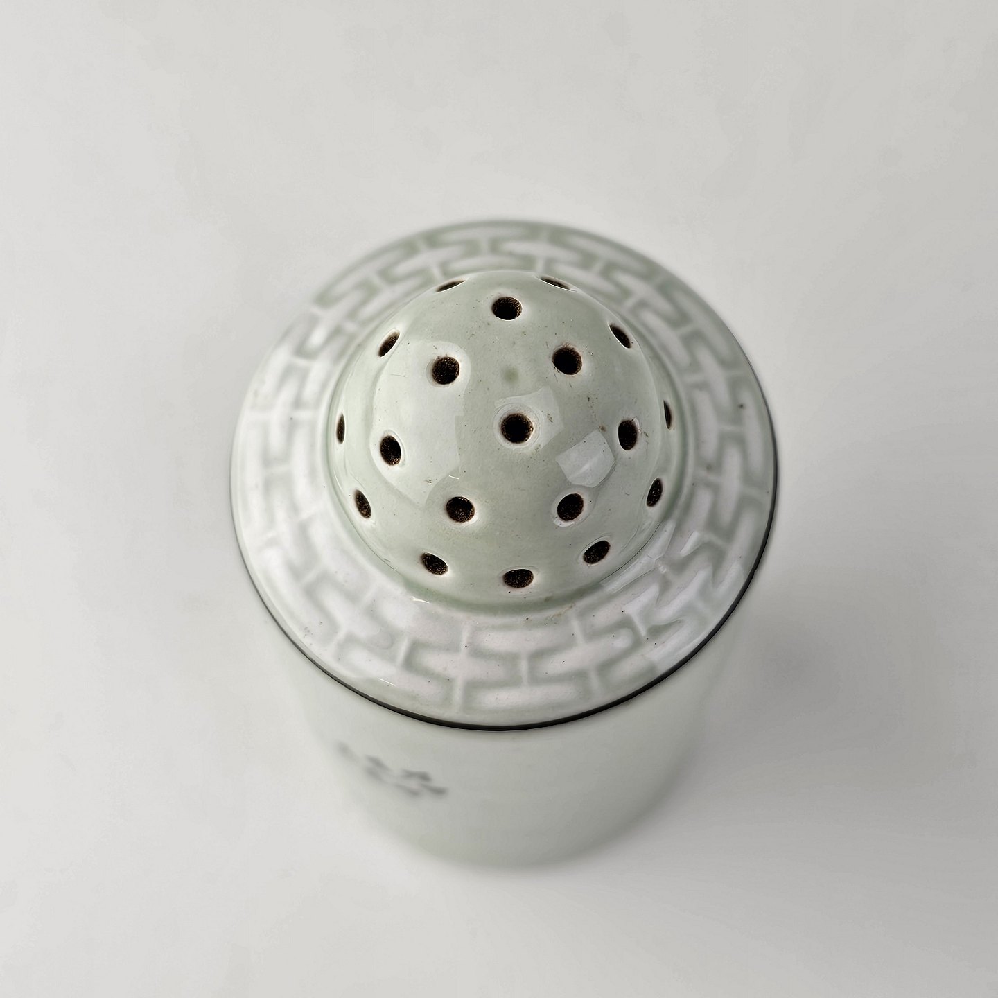 Saltbøsse eller peberbøsse i fajance fra stellet SaltholmFormgiver Thorkild Olsen