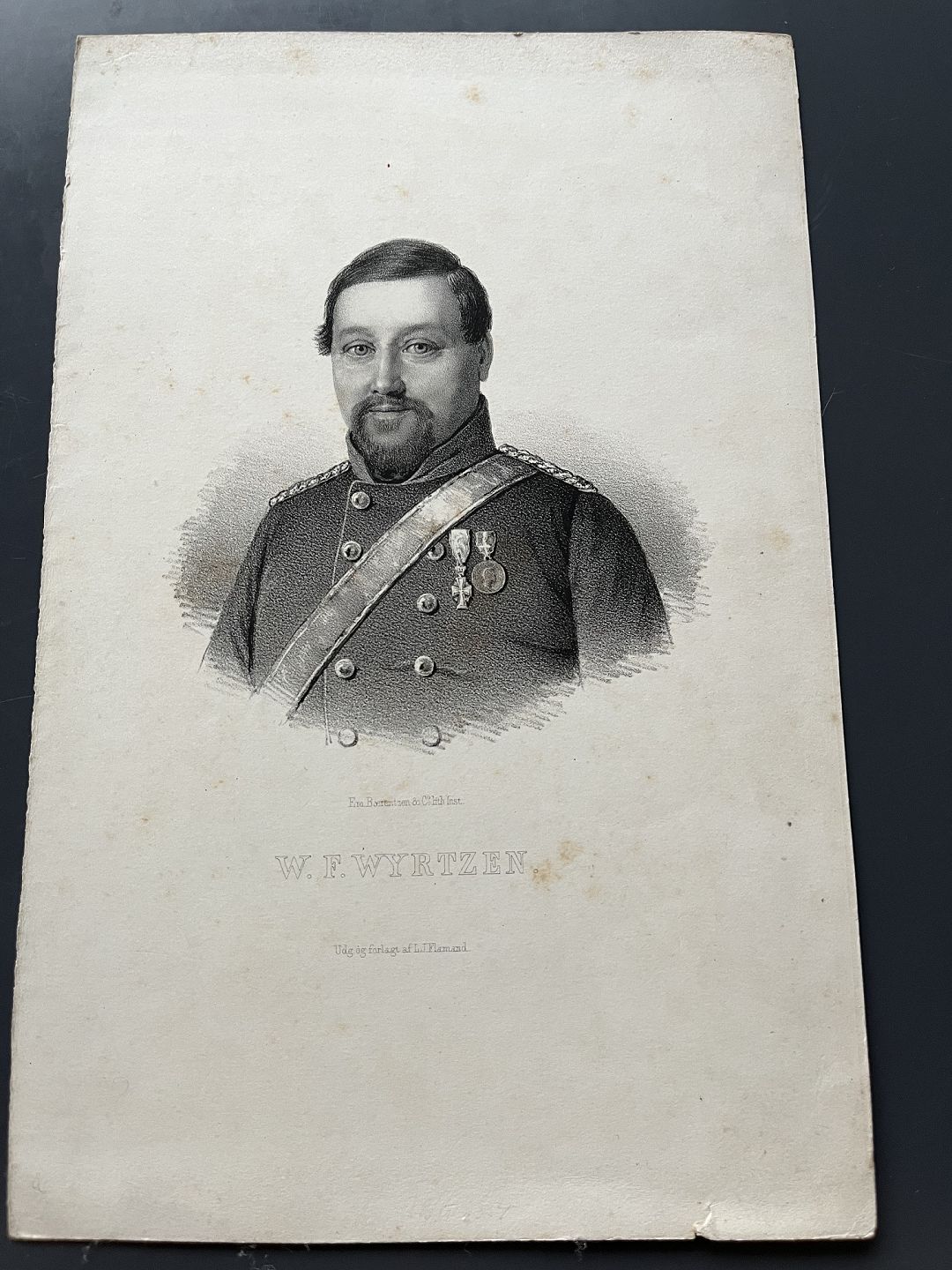 Litografi af Em. Bærentzen - Portræt af Oberstløjtnant Wilhelm Ferdinand Würtzen
