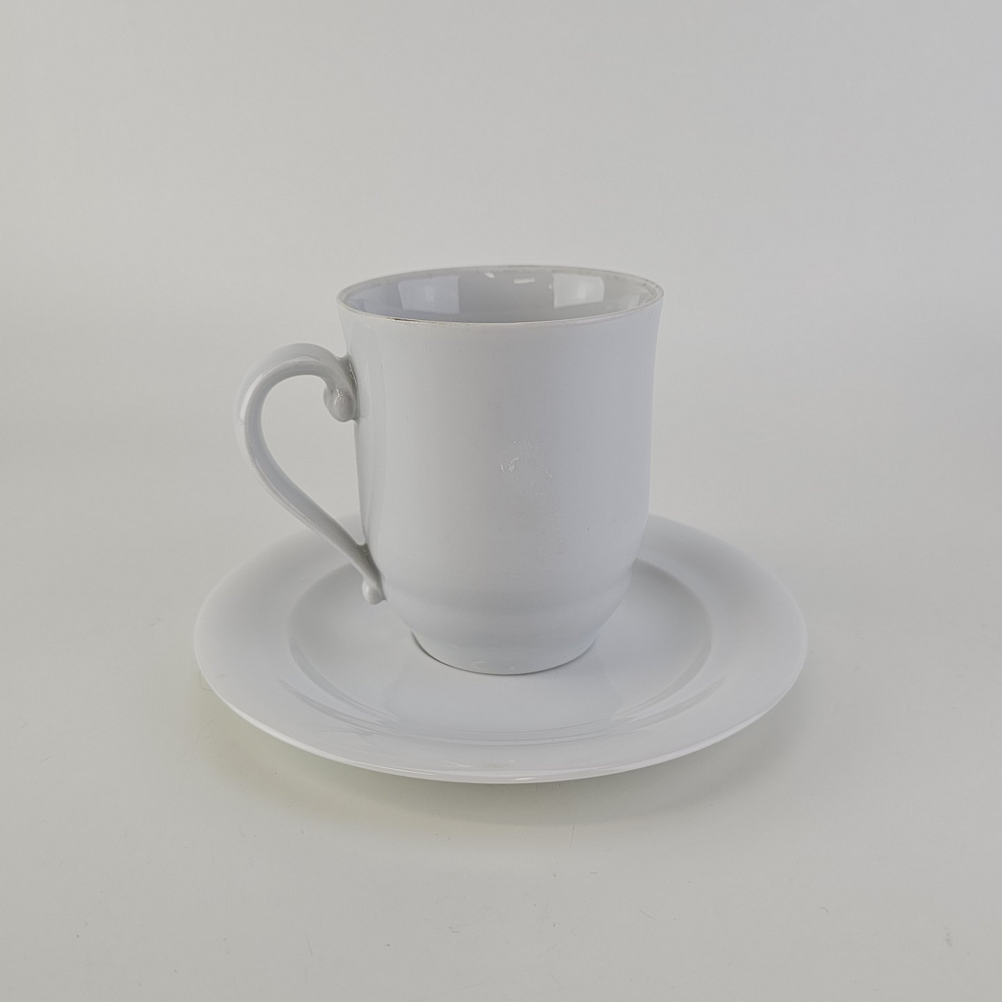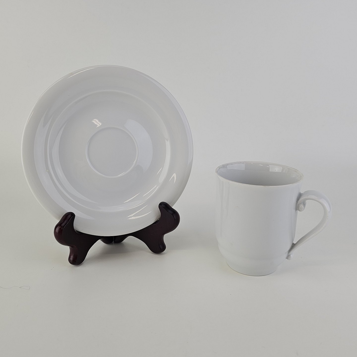 Høj kop med underkop i hvidt kongeligt porcelænKop nr. 494