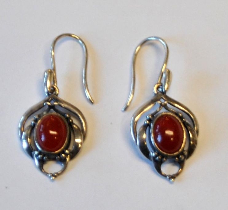 Georg Jensen Ohrringe aus Sterlingsilber mit Karneolen, 2016. Gestempelt. Höhe: 3,4 cm.Heritage-Sammlung.