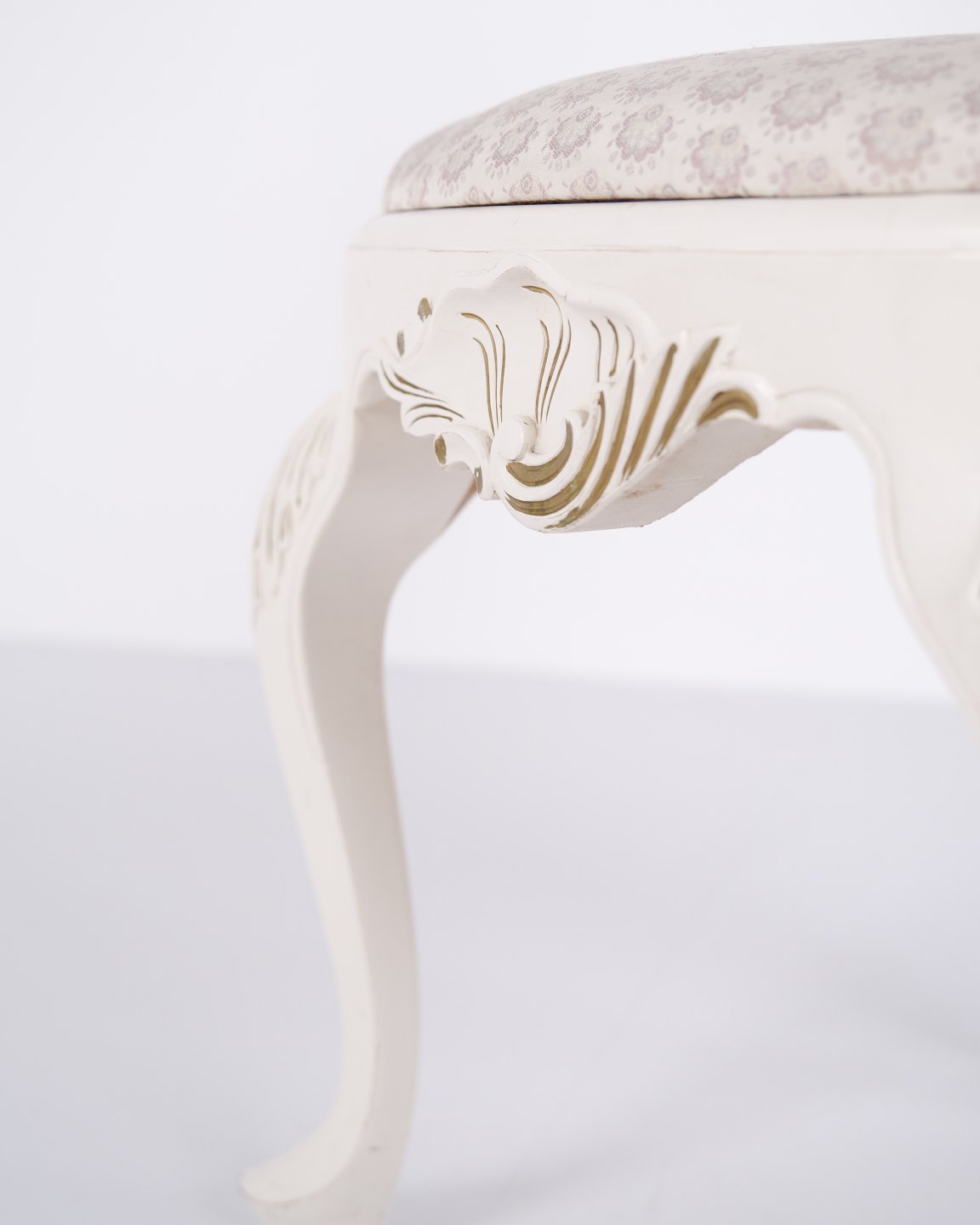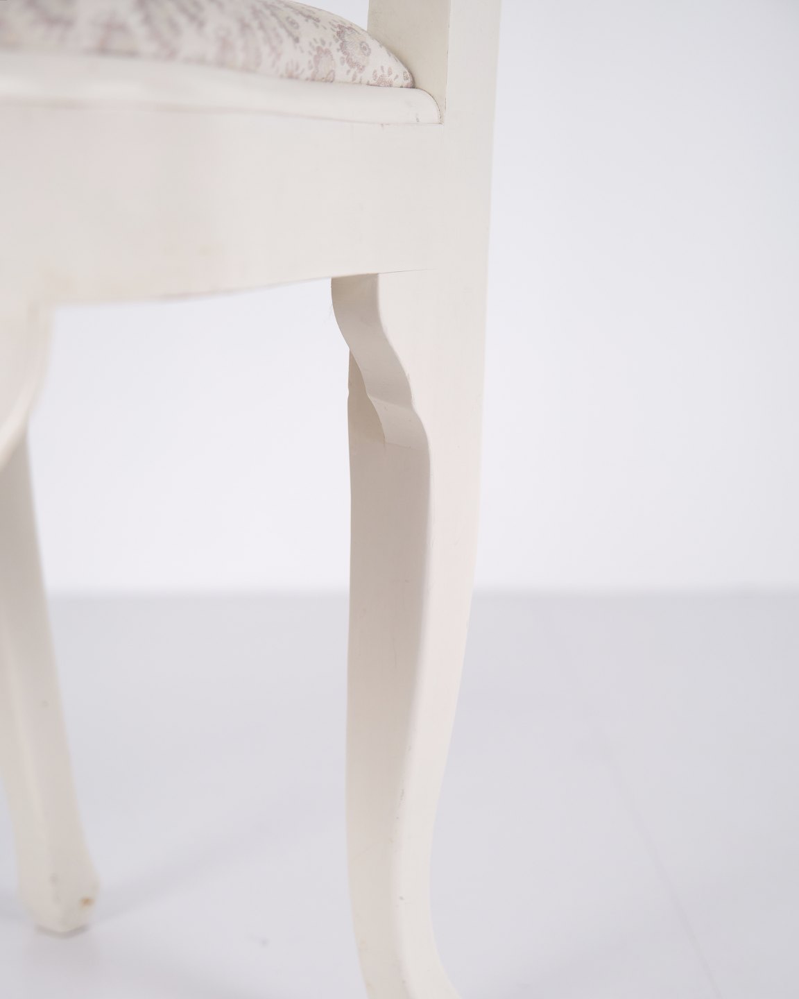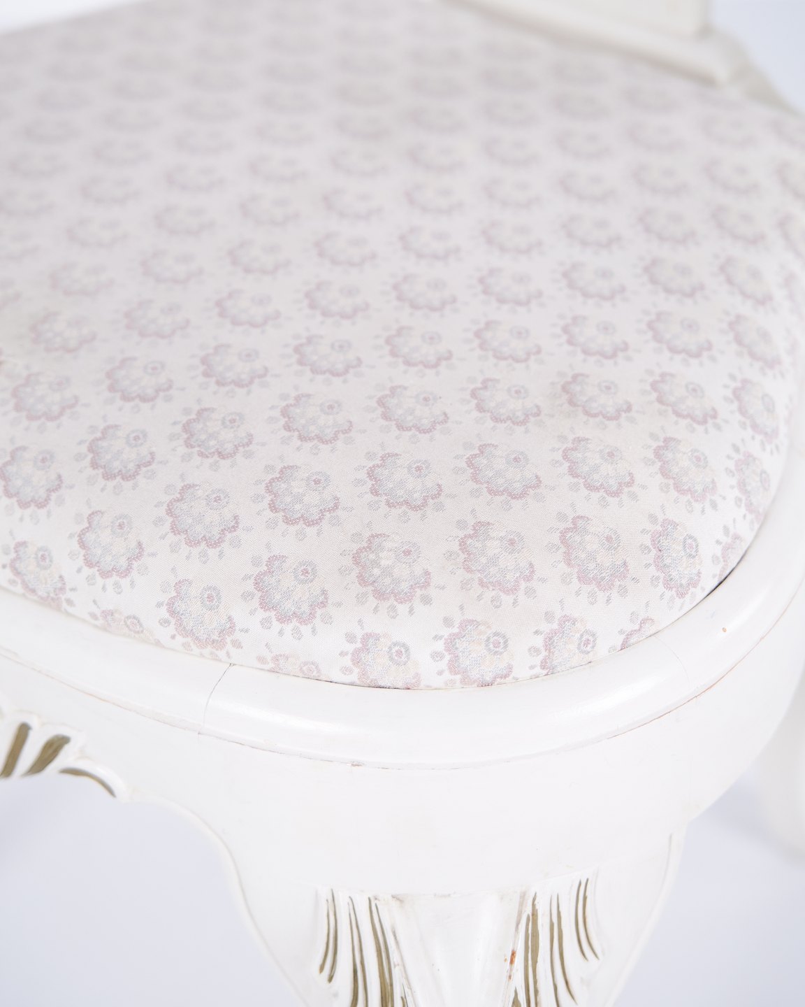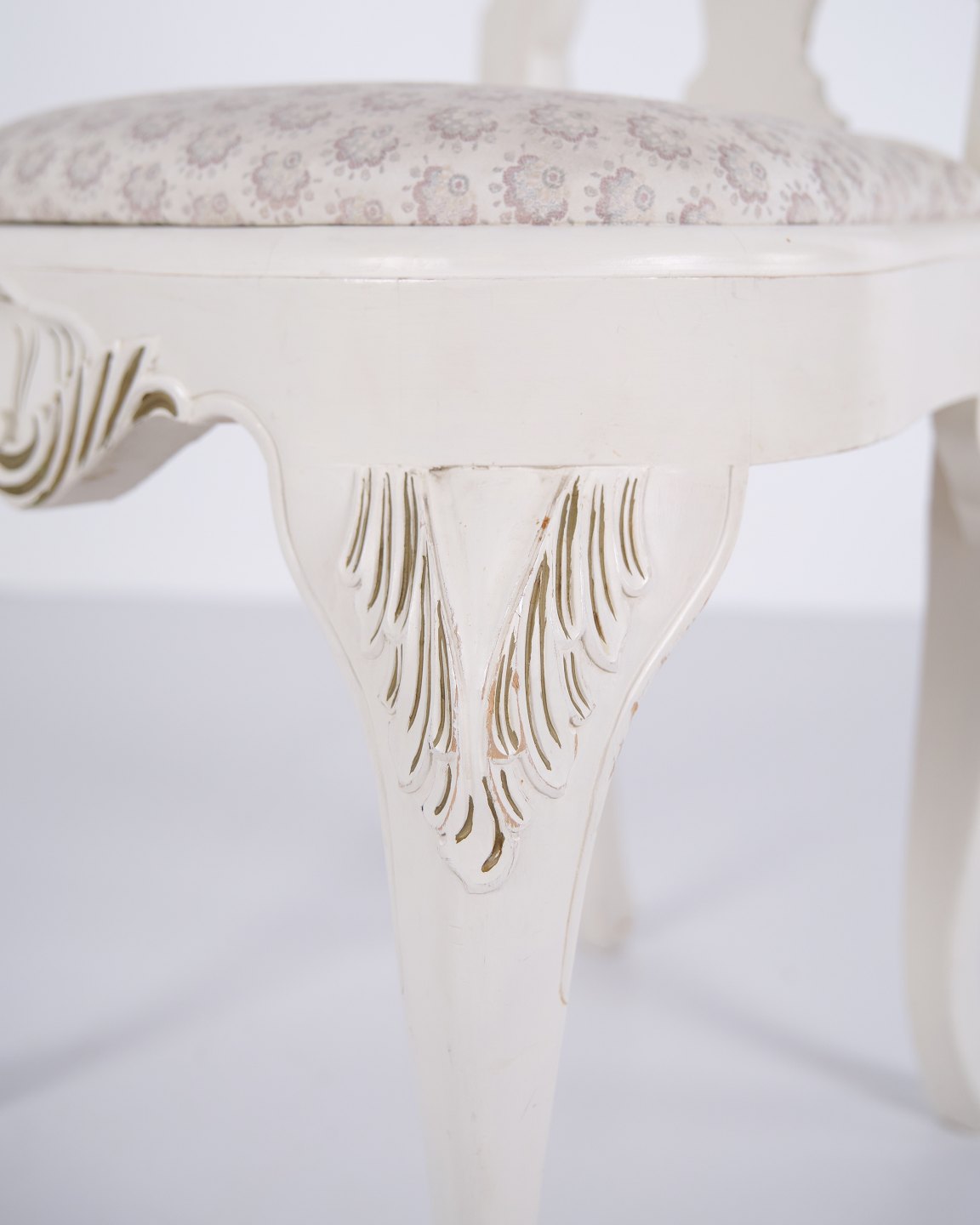 Antike Esszimmerstühle im Neu-Rokoko Stil aus den 1920er Jahren. Satz von 6 weiß lackierten Stühlen mit dekorativen Details.— Stil: Neu-Rokoko