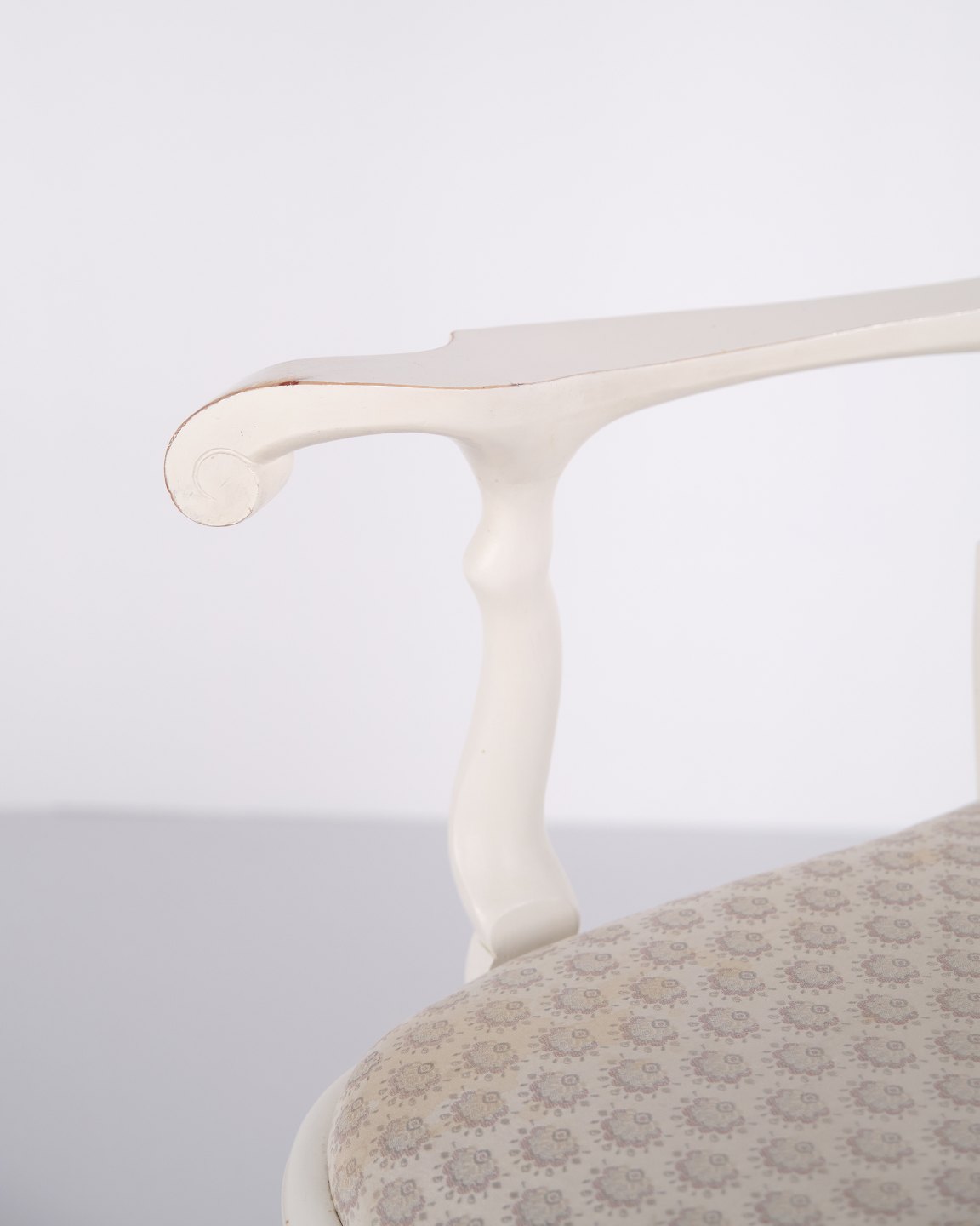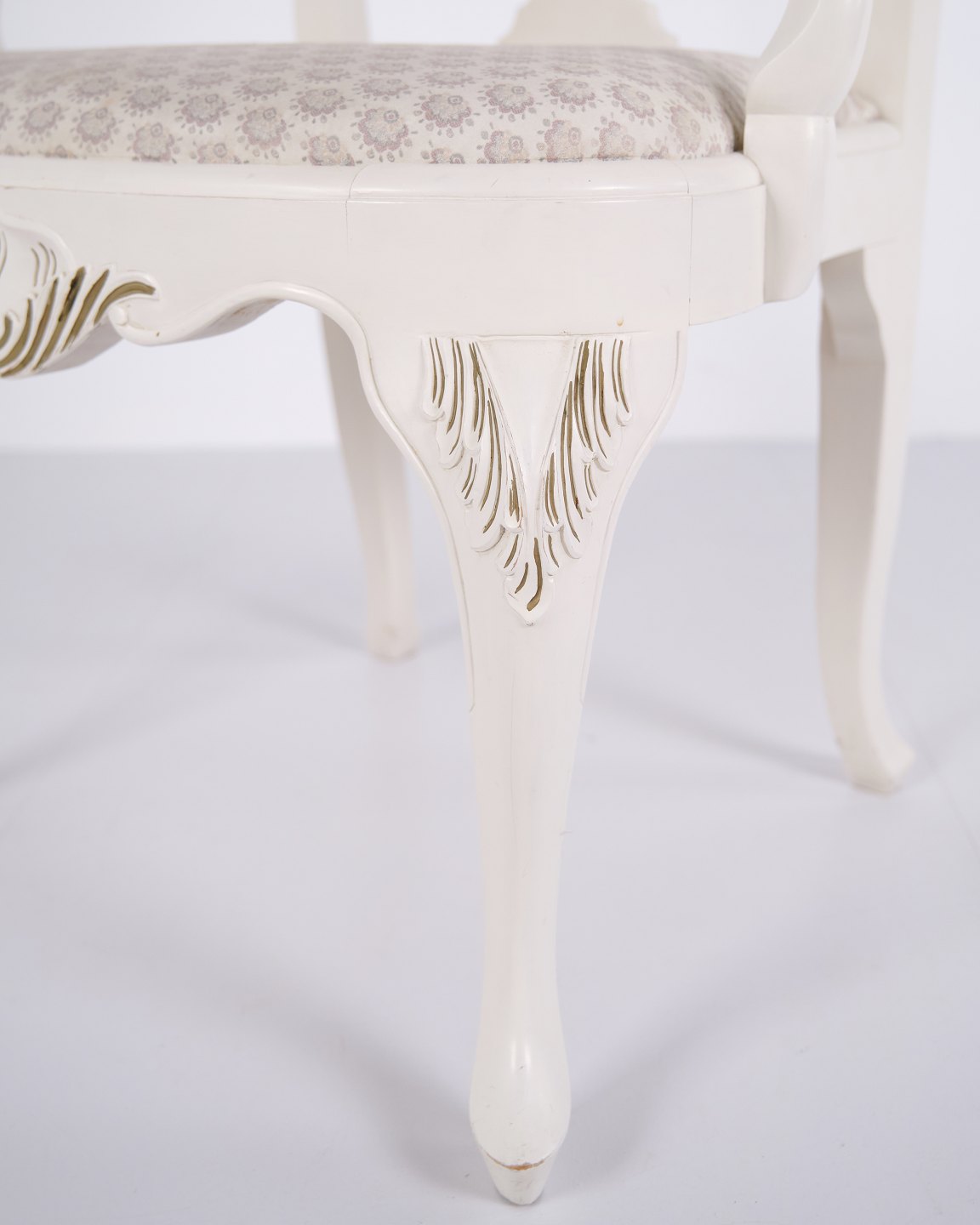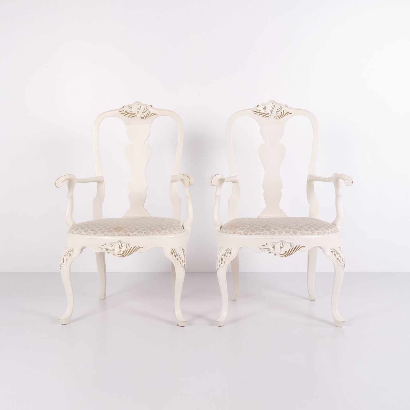 Antike Armlehnsessel aus den 1920er Jahren im Neu-Rokoko Stil. Satz von 2 weiß lackierten Armlehnsesseln mit dekorativen Details. Antiker Rokoko Möbelstil 1920er Jahre.— Stil: Neu-Rokoko