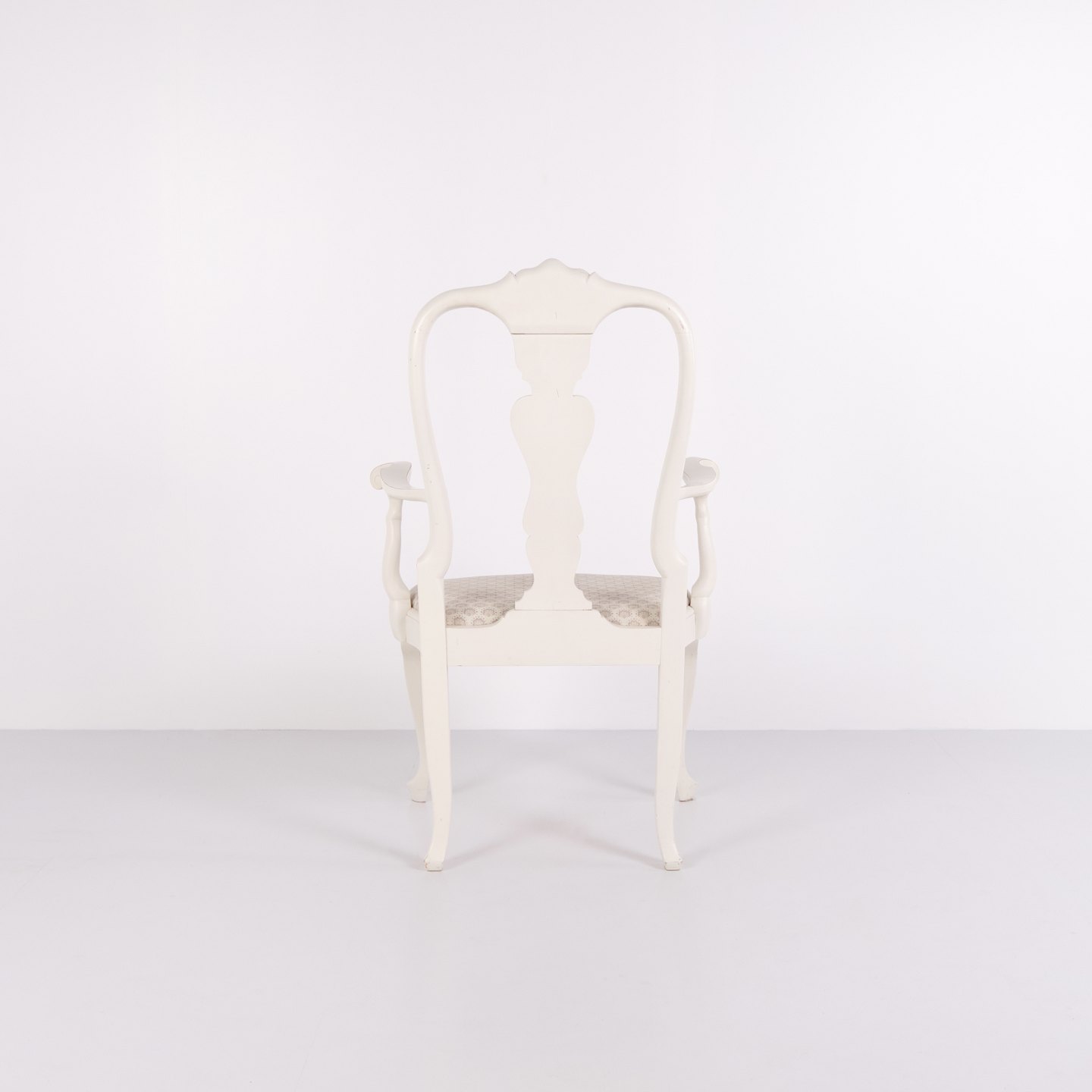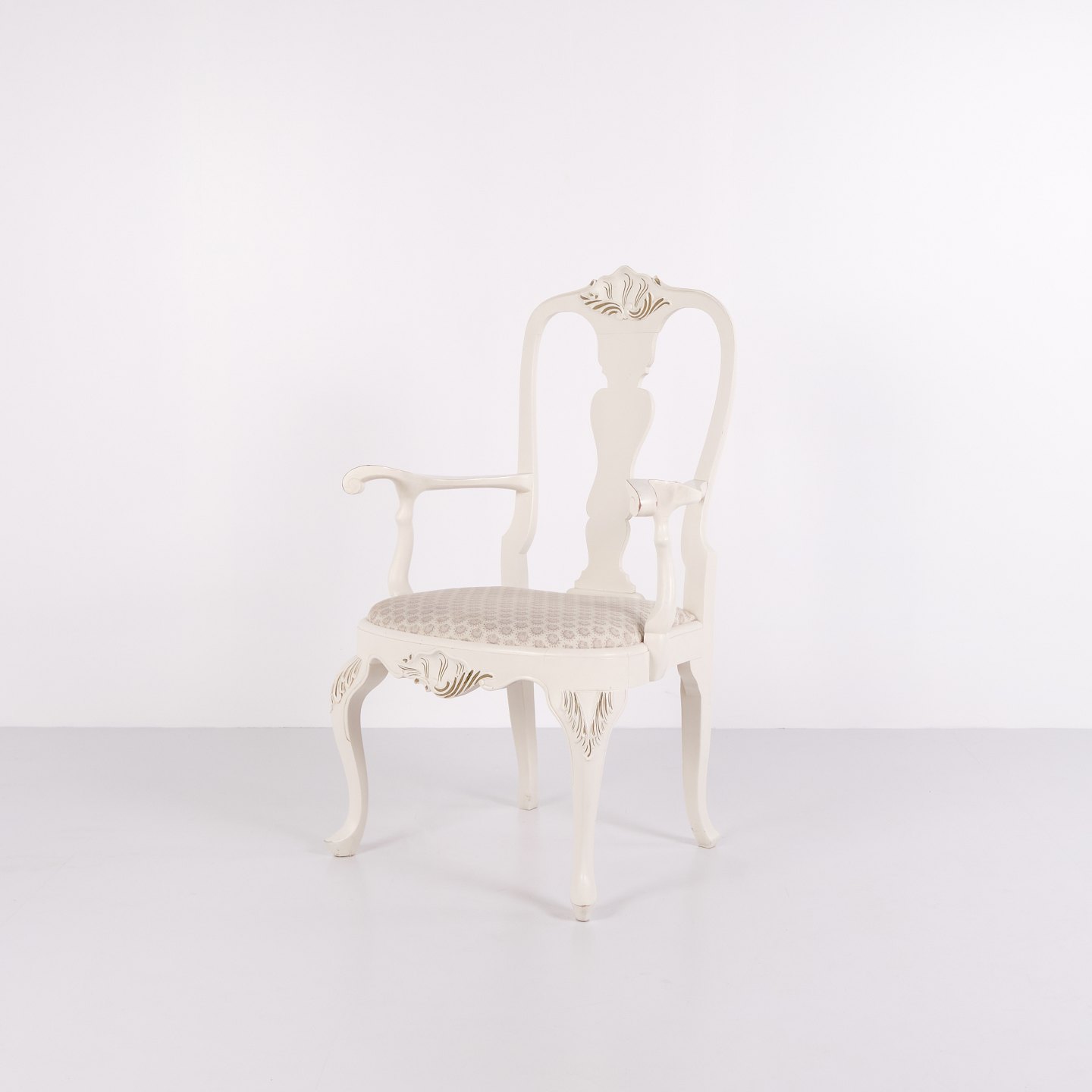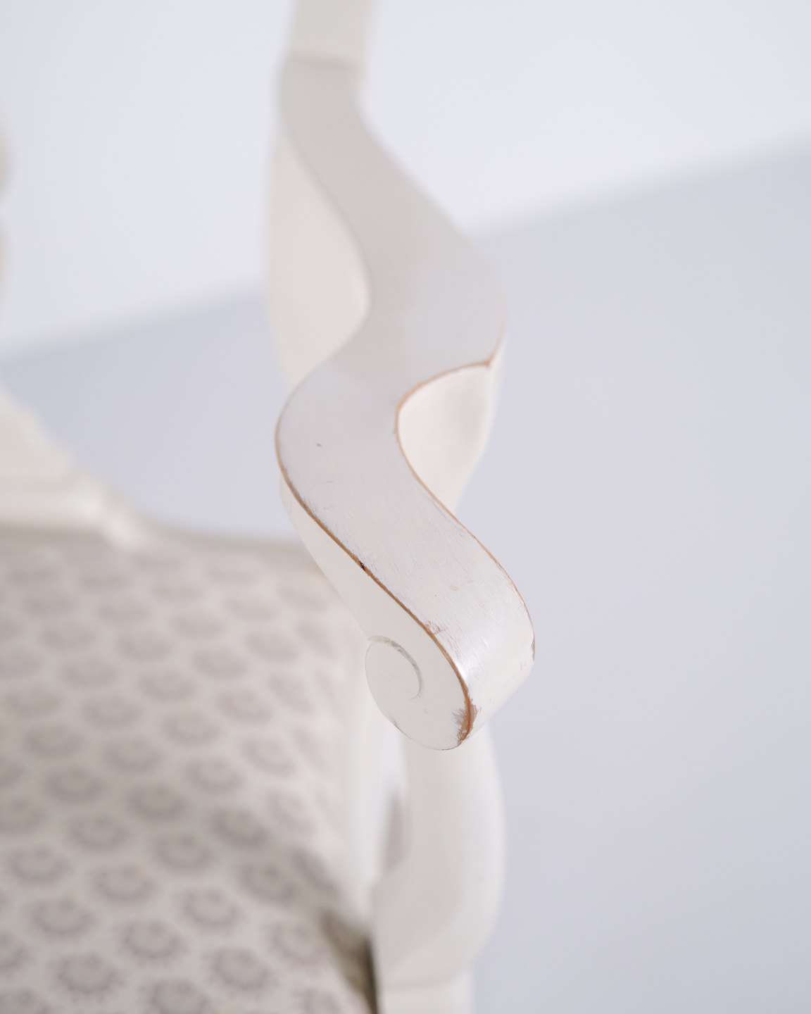 Antike Armlehnsessel aus den 1920er Jahren im Neu-Rokoko Stil. Satz von 2 weiß lackierten Armlehnsesseln mit dekorativen Details. Antiker Rokoko Möbelstil 1920er Jahre.— Stil: Neu-Rokoko