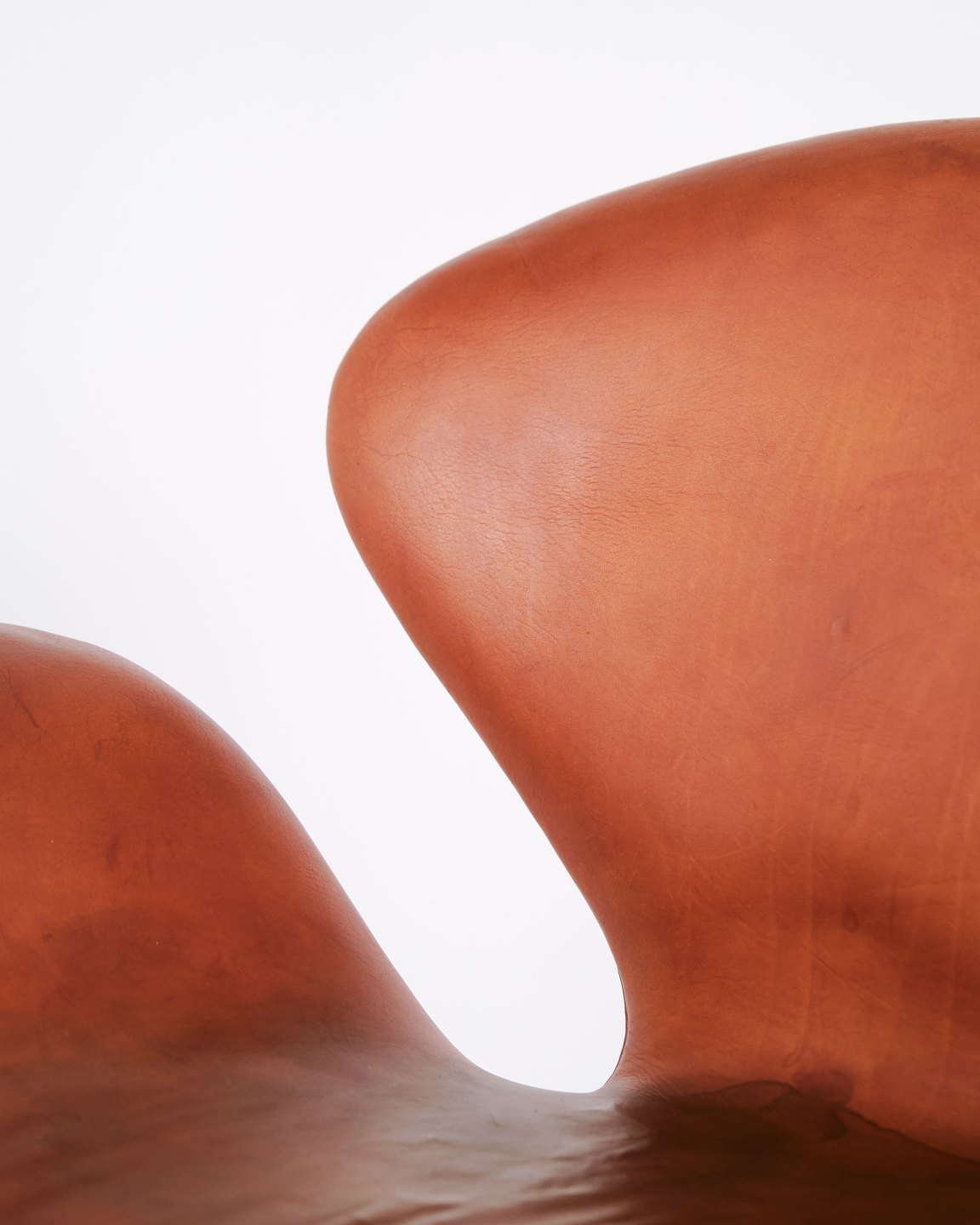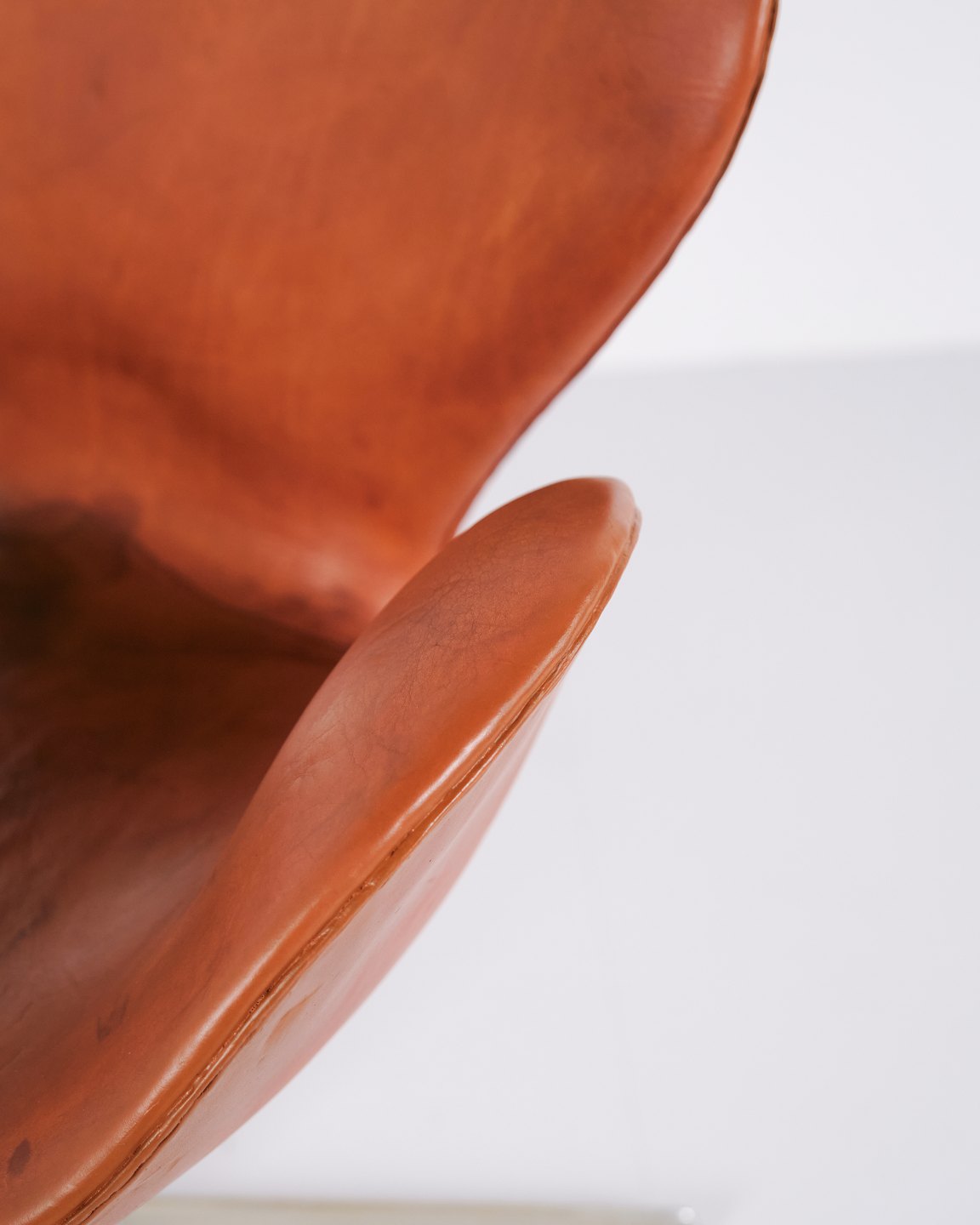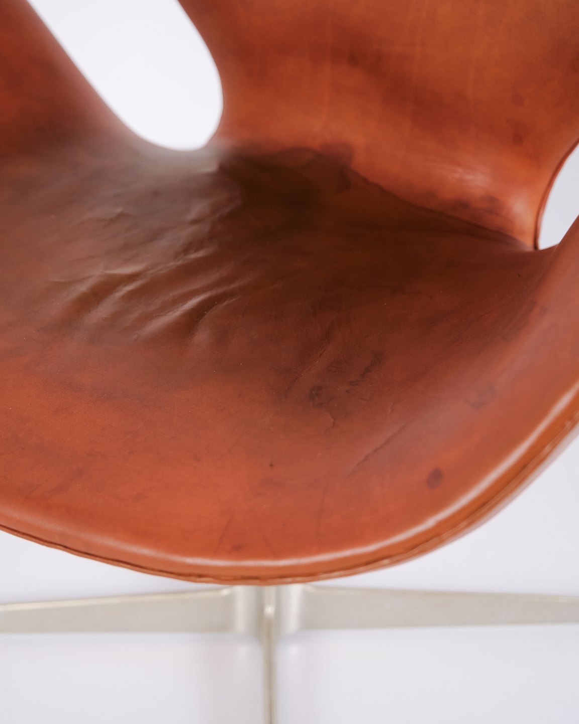 Der Schwan Modell 3320 von Arne Jacobsen für Fritz Hansen in originalem Cognacleder aus den 1960er Jahren. Ikonisches dänisches Design.— Designer: Arne Jacobsen