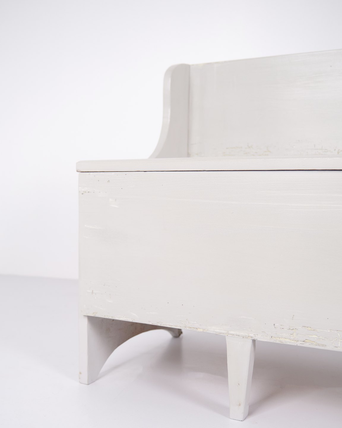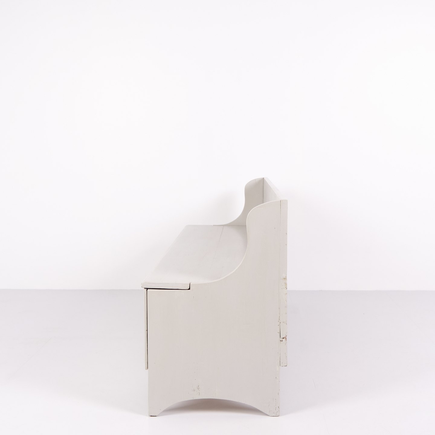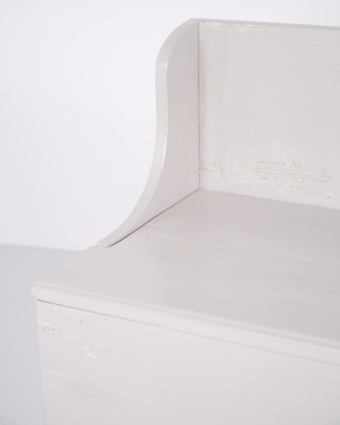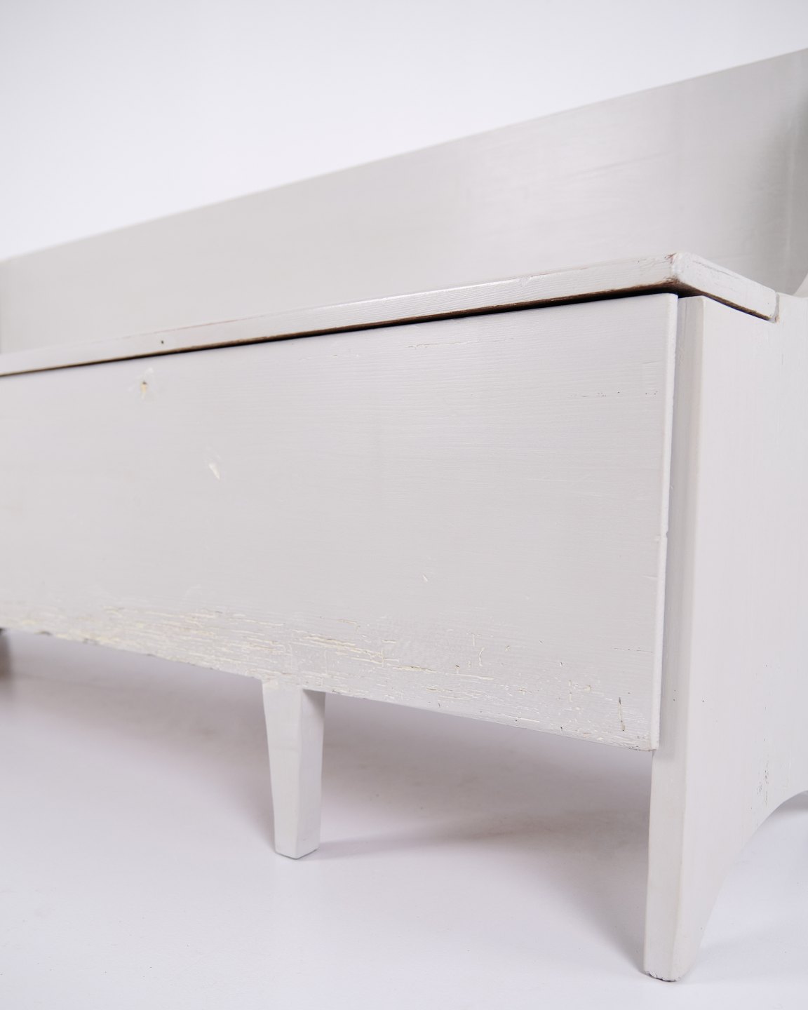 Antike Truhenbank aus den 1890er Jahren aus grau lackiertem Kiefernholz. Antike Aufbewahrungsbank aus dem 19. Jahrhundert.— Typ: Truhenbank mit Aufbewahrung
