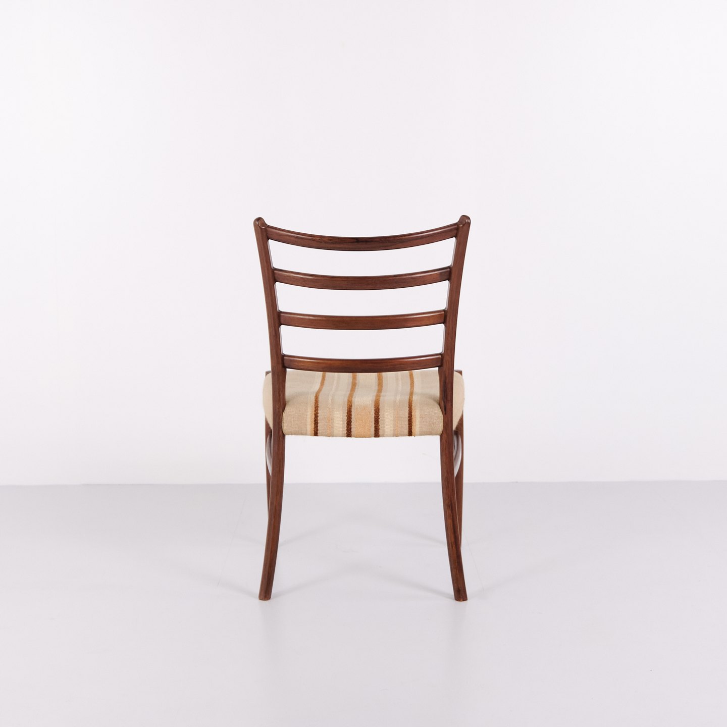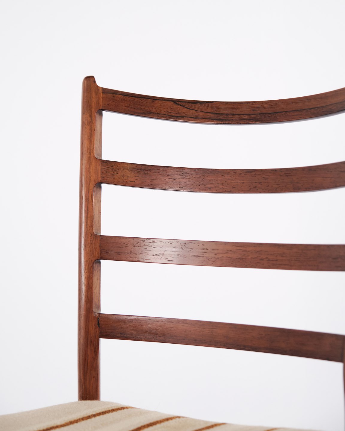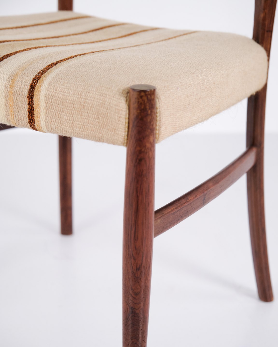 Esszimmerstühle von N.O. Møller aus Palisander mit gestreifter Polsterung aus den 1960er Jahren. Entwurf von J.L. Møllers Møbelfabrik.— Designer: N.O. Møller