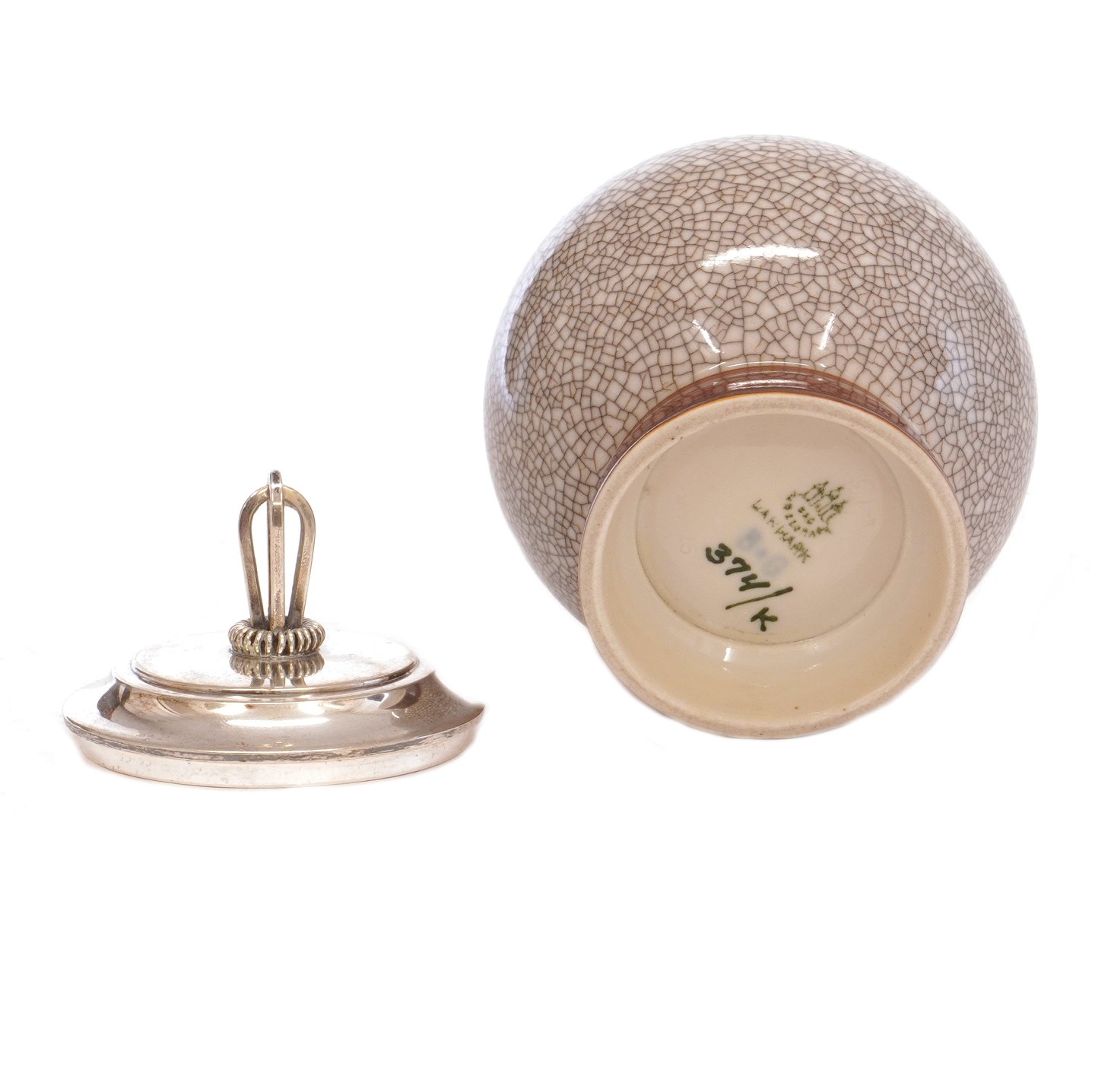 Konfitürentopf aus Porzellan von Bing & Grøndahl, Kopenhagen. Silberdeckel von Hugo Grün, Kopenhagen, 1949H: 13cm