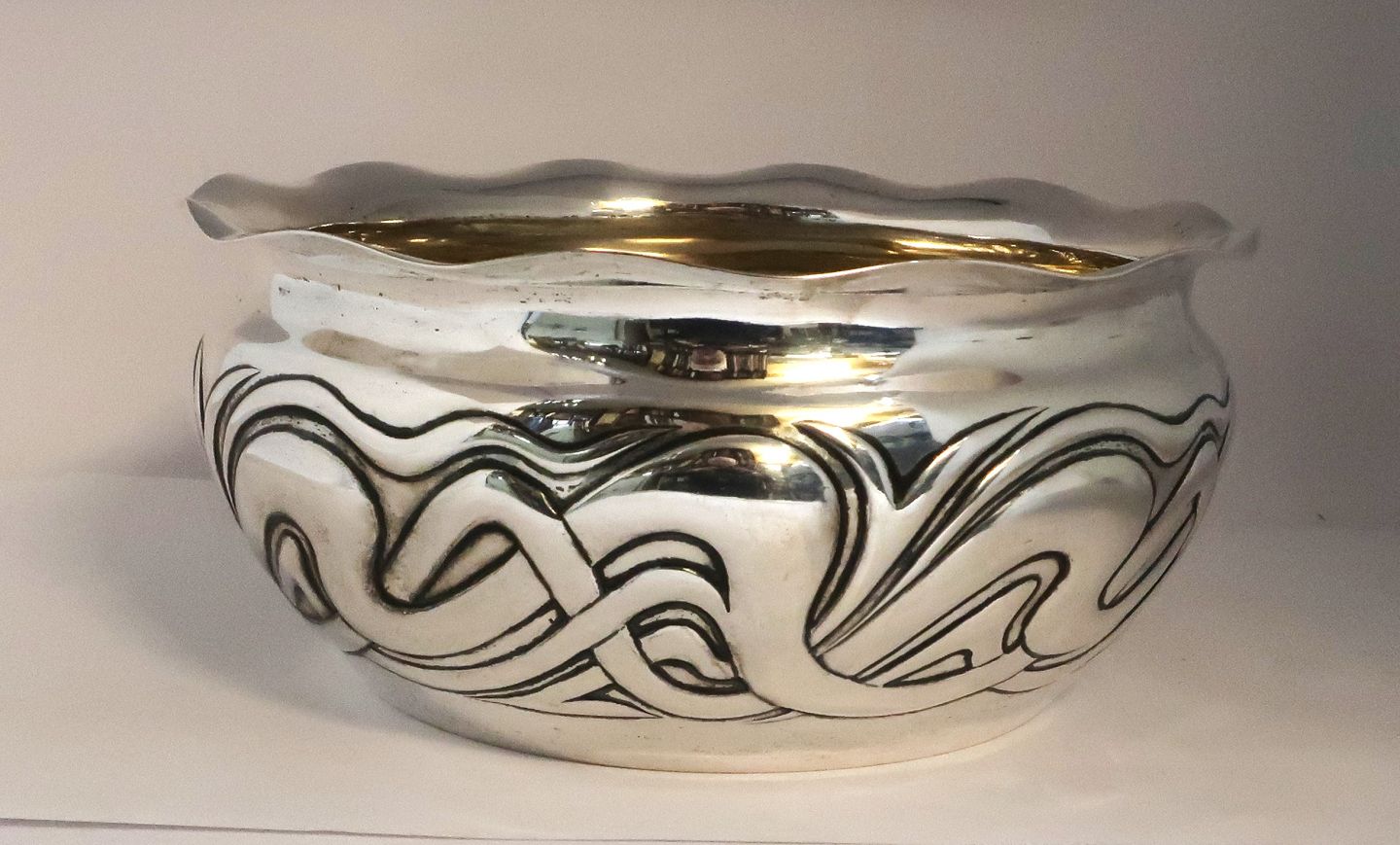 P. Hertz. Große Silberschale (830). Höhe 11 cm. Durchmesser 25 cm. Hergestellt 1904. Händler
