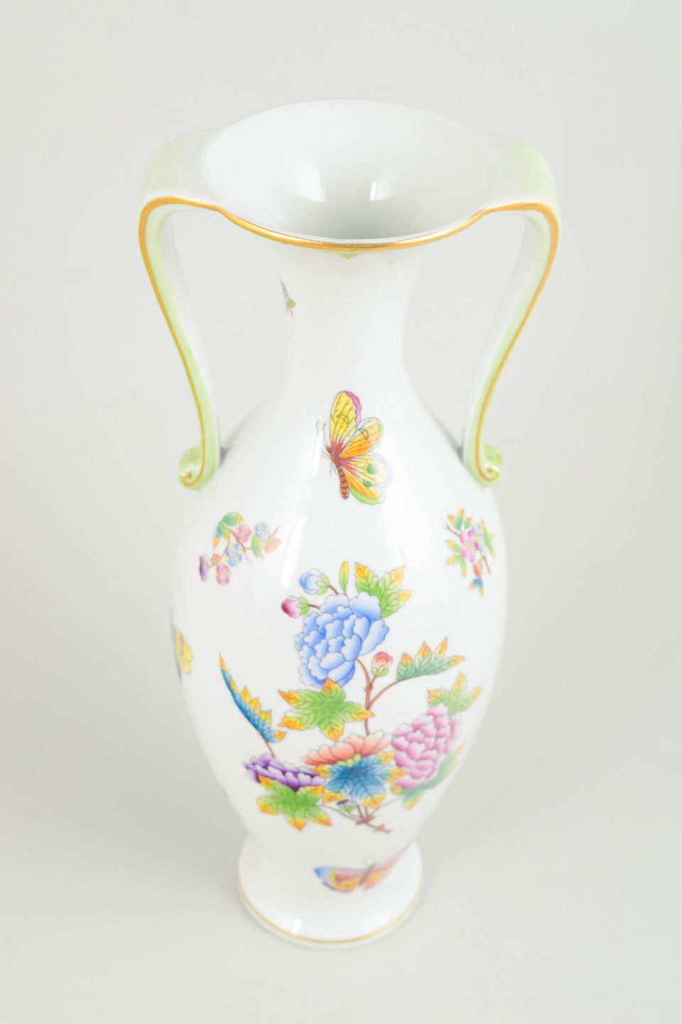 Herend Porcelænsfabrik er kendt for eksklusivt, håndmalet porcelæn i høj kvalitet. Mønsteret Queen Victoria er blandt fabrikkens mest ikoniske dekorationer og forbindes især med den rigt detaljerede kombination af blomster, sommerfugle og forgyldning, som har gjort serien eftertragtet blandt samlere.
