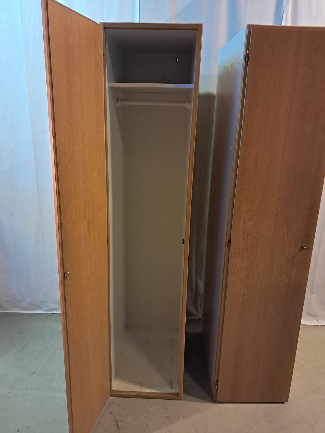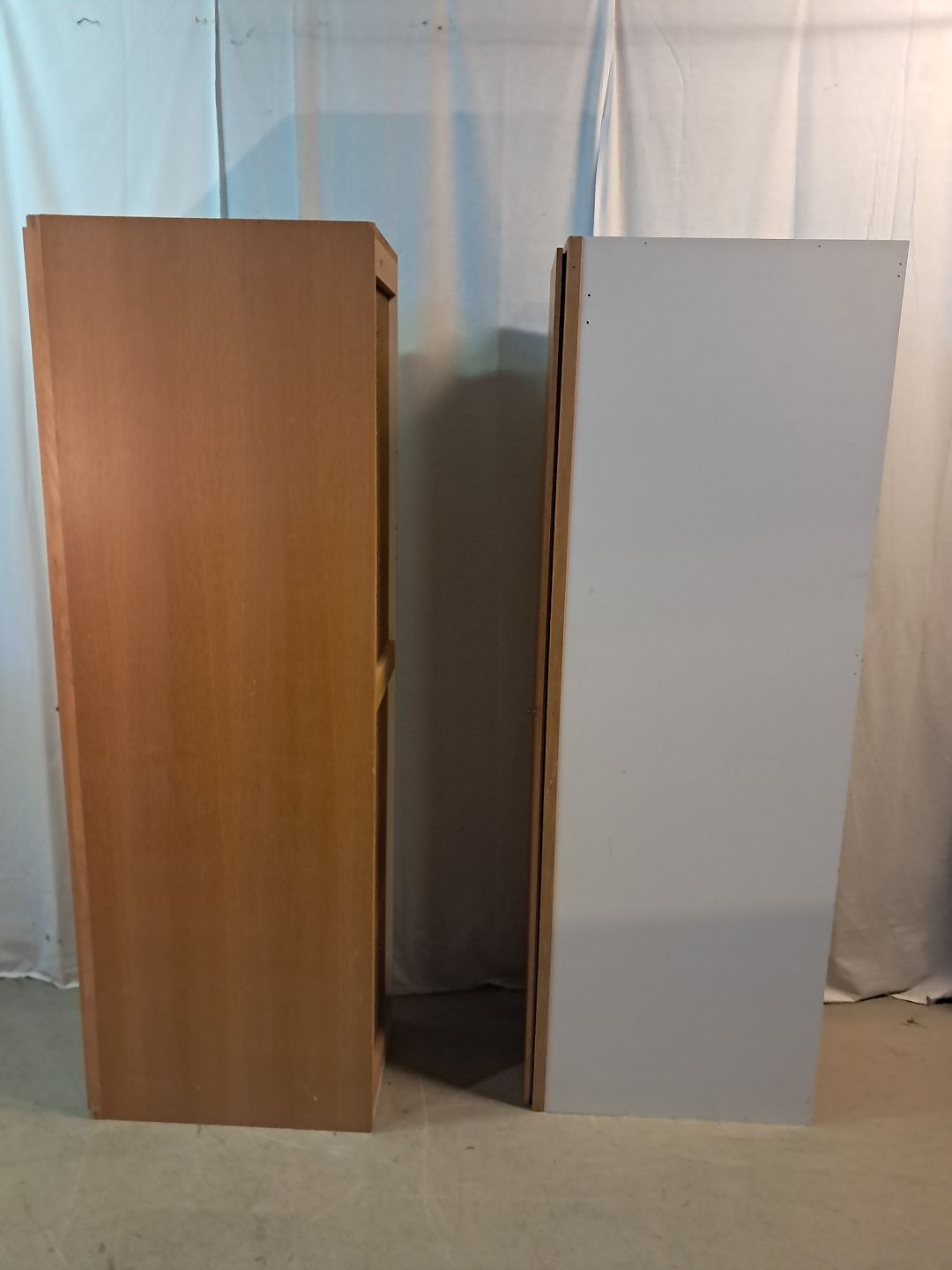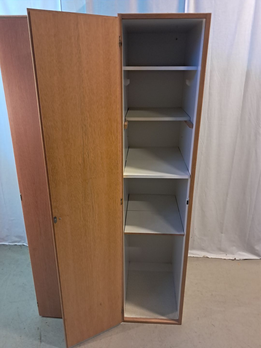 2 Skabe i fineret egetræ, fra 1990erne.De har brugsspor.