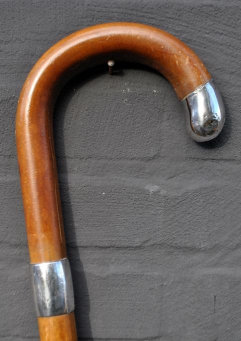 Spazierstock aus Holz mit Silberbeschlägen, Schweden, 19. Jahrhundert. Gestempelt: S und 830S sowie drei Kronen. Mit Metallspitze. Länge: 92 cm.Bestellnummer: 28918