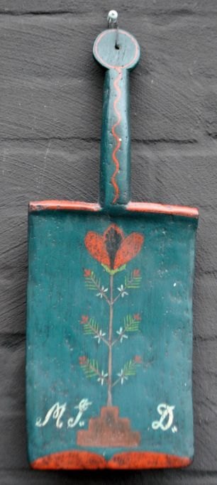 Klopfbrett, Dänemark, 19. Jahrhundert. Aus Buche mit blauer Blumenmalerei. Mit den Initialen: AJD Painted. L: 45 cm. B: 17 cm.Bestellnummer: 28822