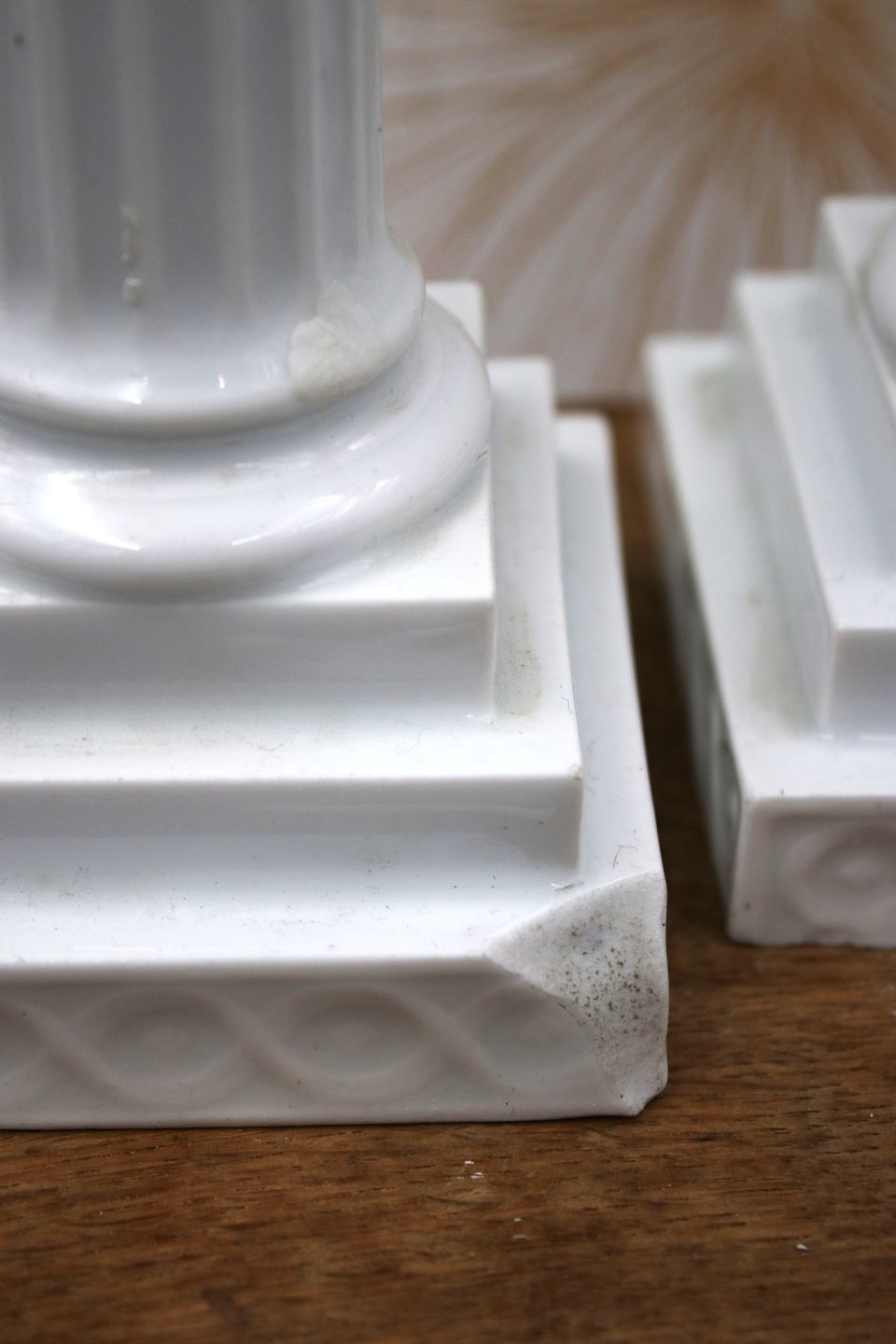 Et par antikke kolonne lysestager fra Royal Copenhagen i hvid porcelæn fra år 1850-70...