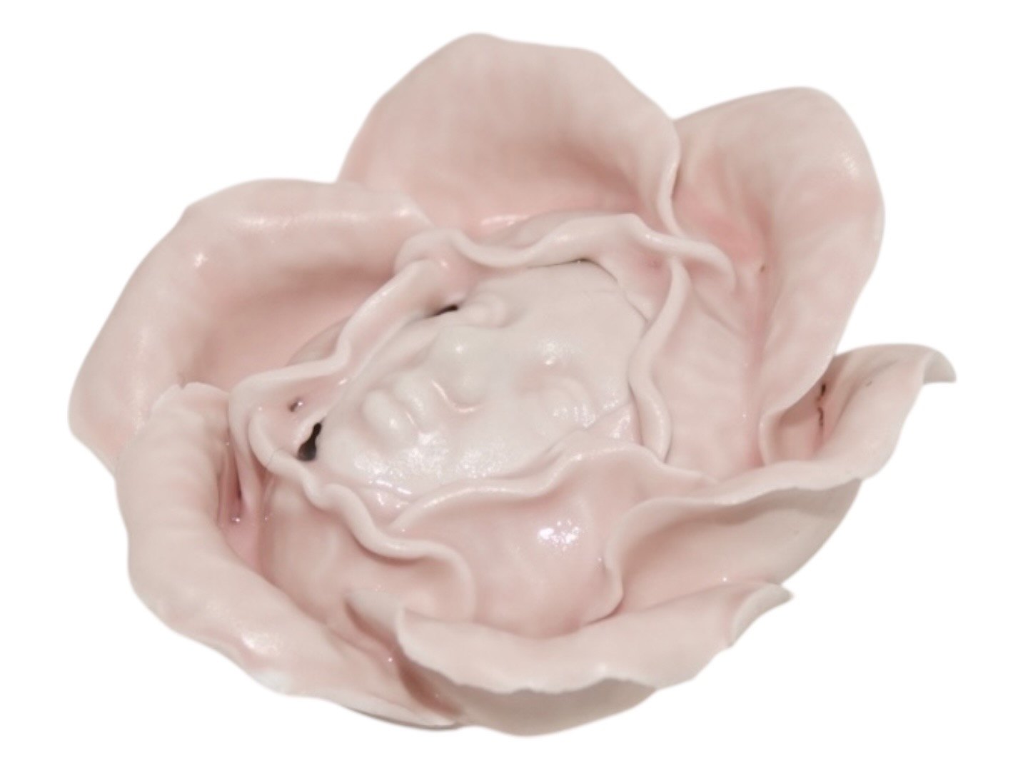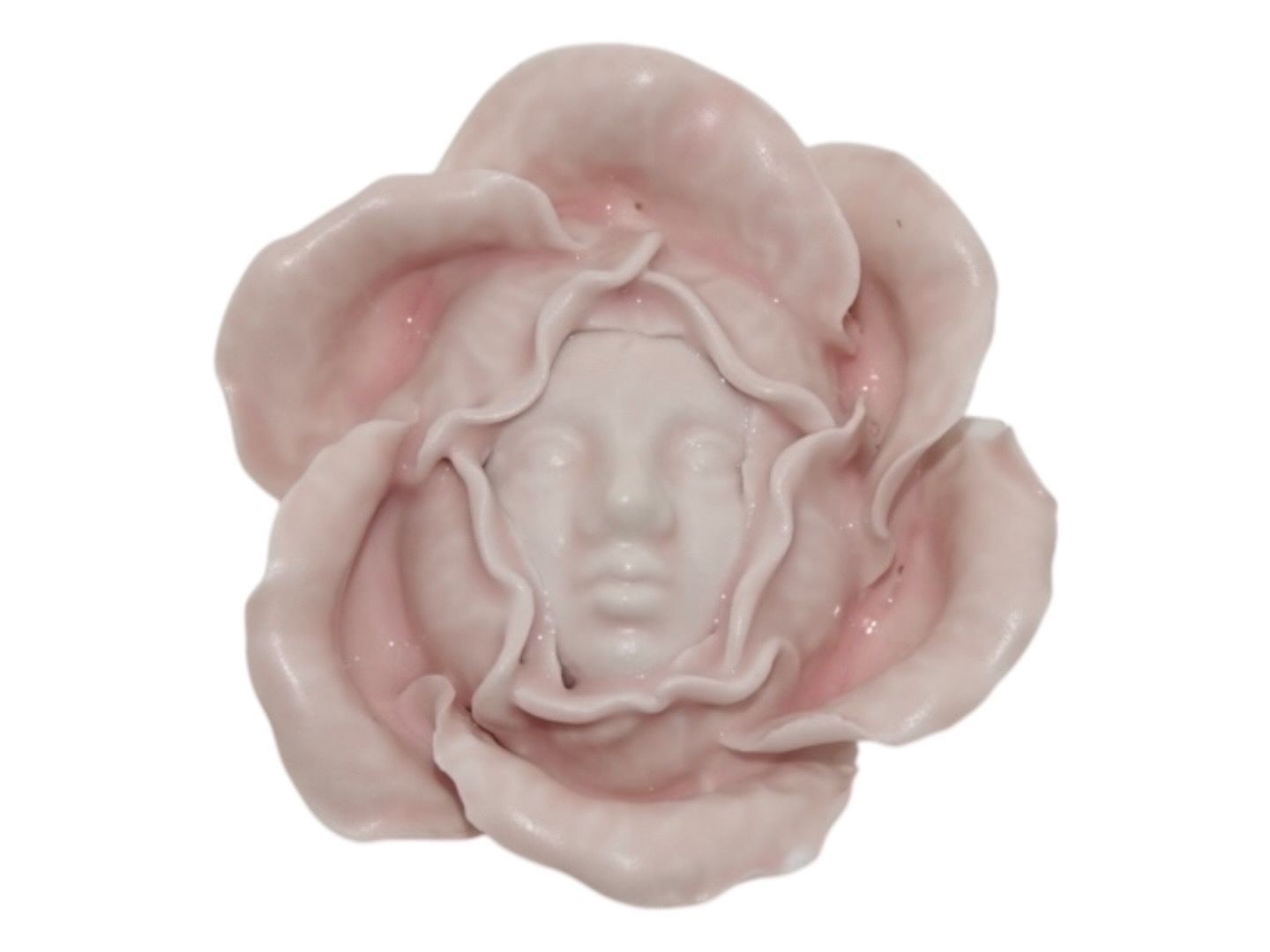 Lyserød broche designet af Arje Griegst.Lavet hos Royal Copenhagen - måske en prøve.
