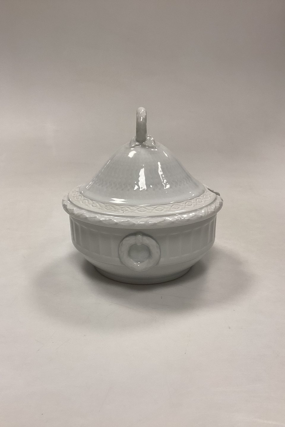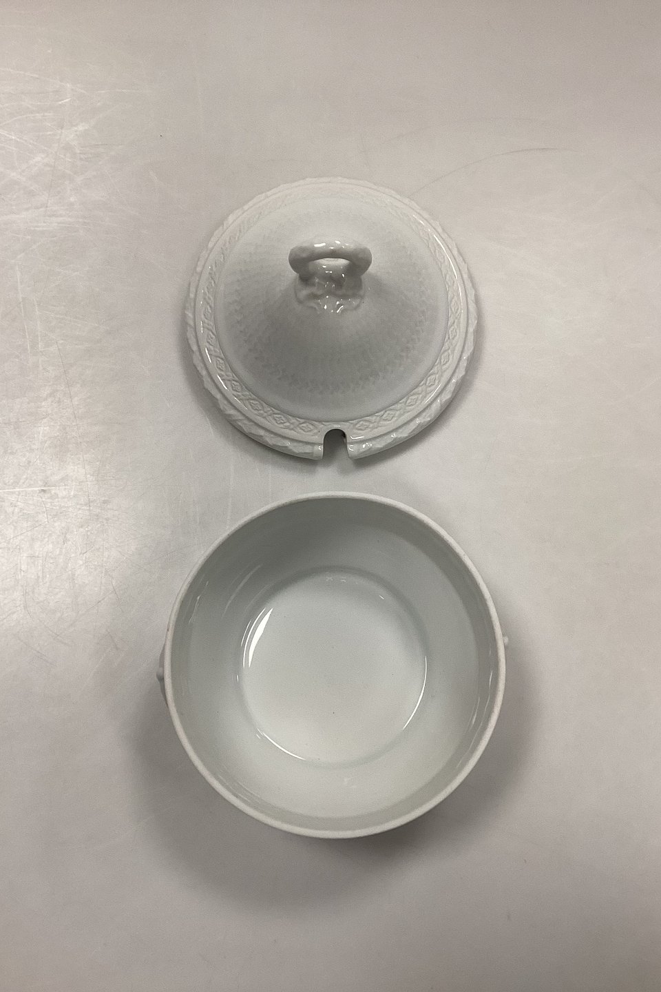 Royal Copenhagen Hvid Vifte Kompotskål med låg No. 170/171. Måler 13,5 cm x 14 cm / 5,31 in. x 5,51 in.Lager: 1