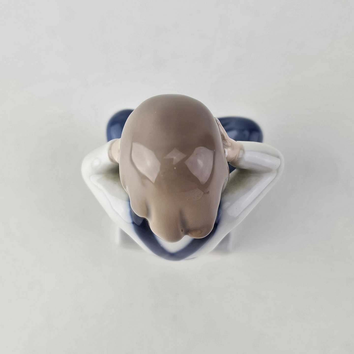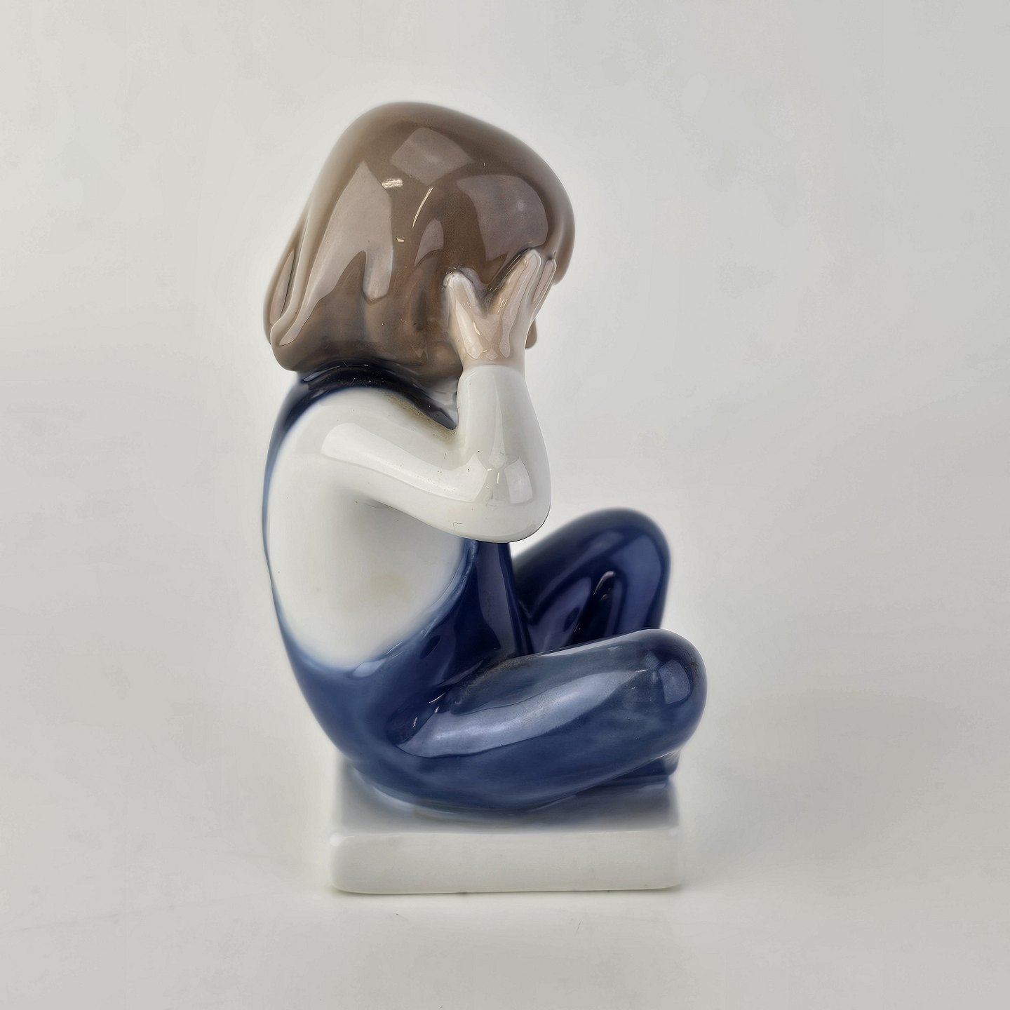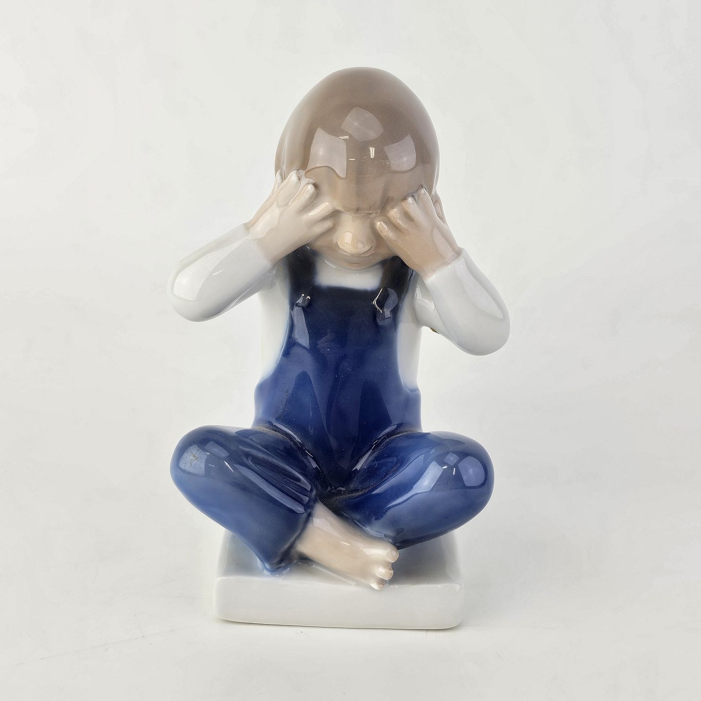 Figur i kongeligt porcelæn med motiv af en dreng, som sidder med benene over kors og holder sig for øjneneNr. 5460