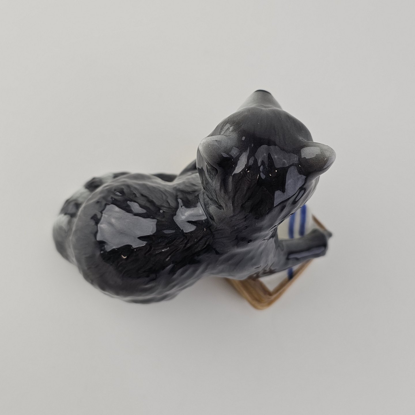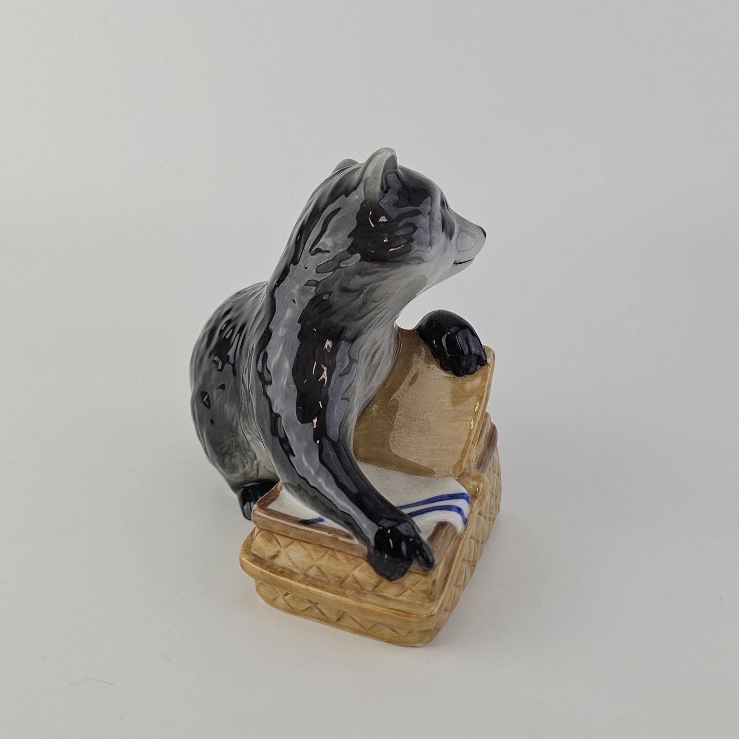 Figur i kongeligt porcelæn med motiv af en vaskebjørn med en picnickurv Nr. 055