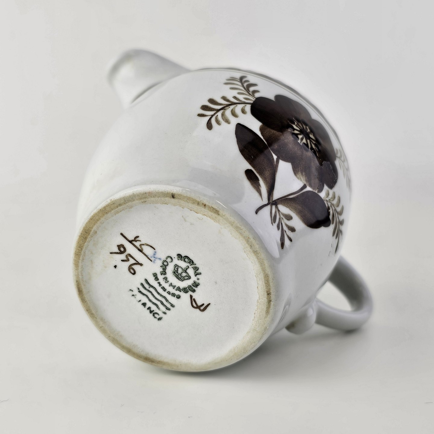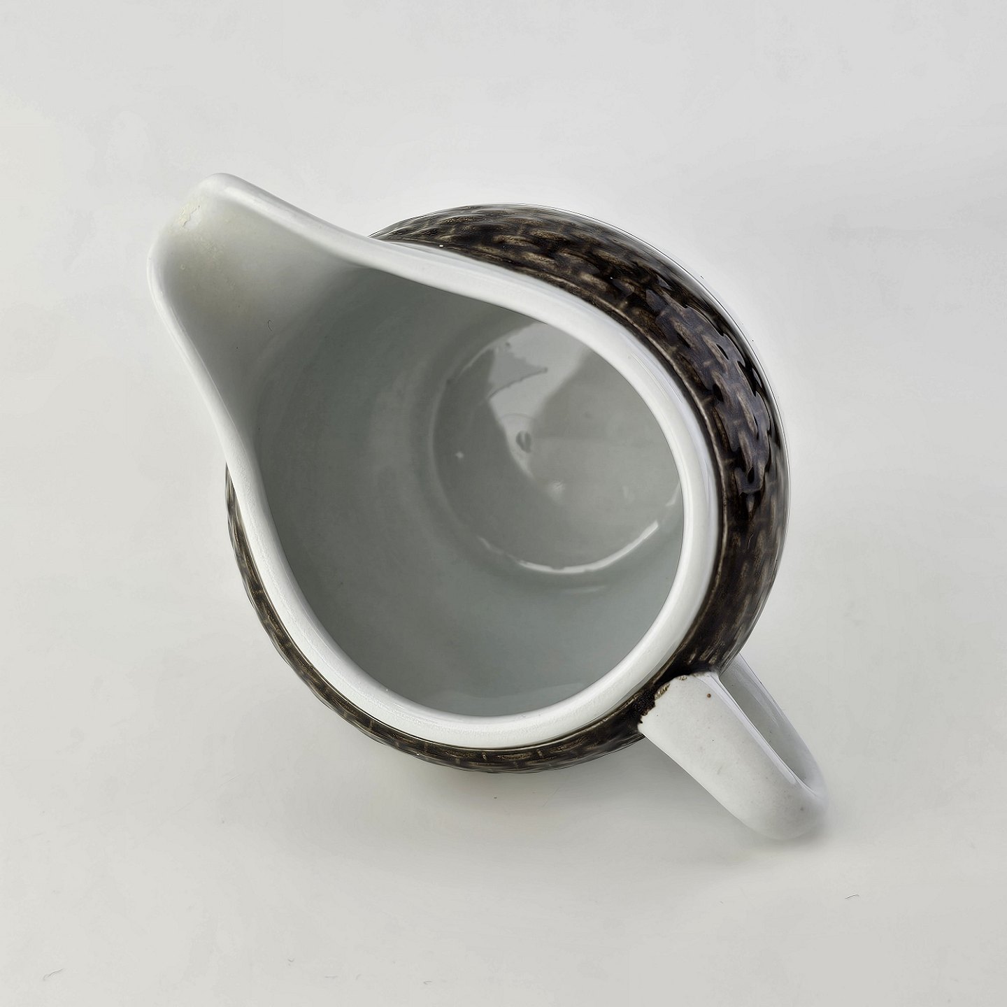 Flødekande i fajance fra stellet Brun Tranquebar fra år 1919Nr 45/956