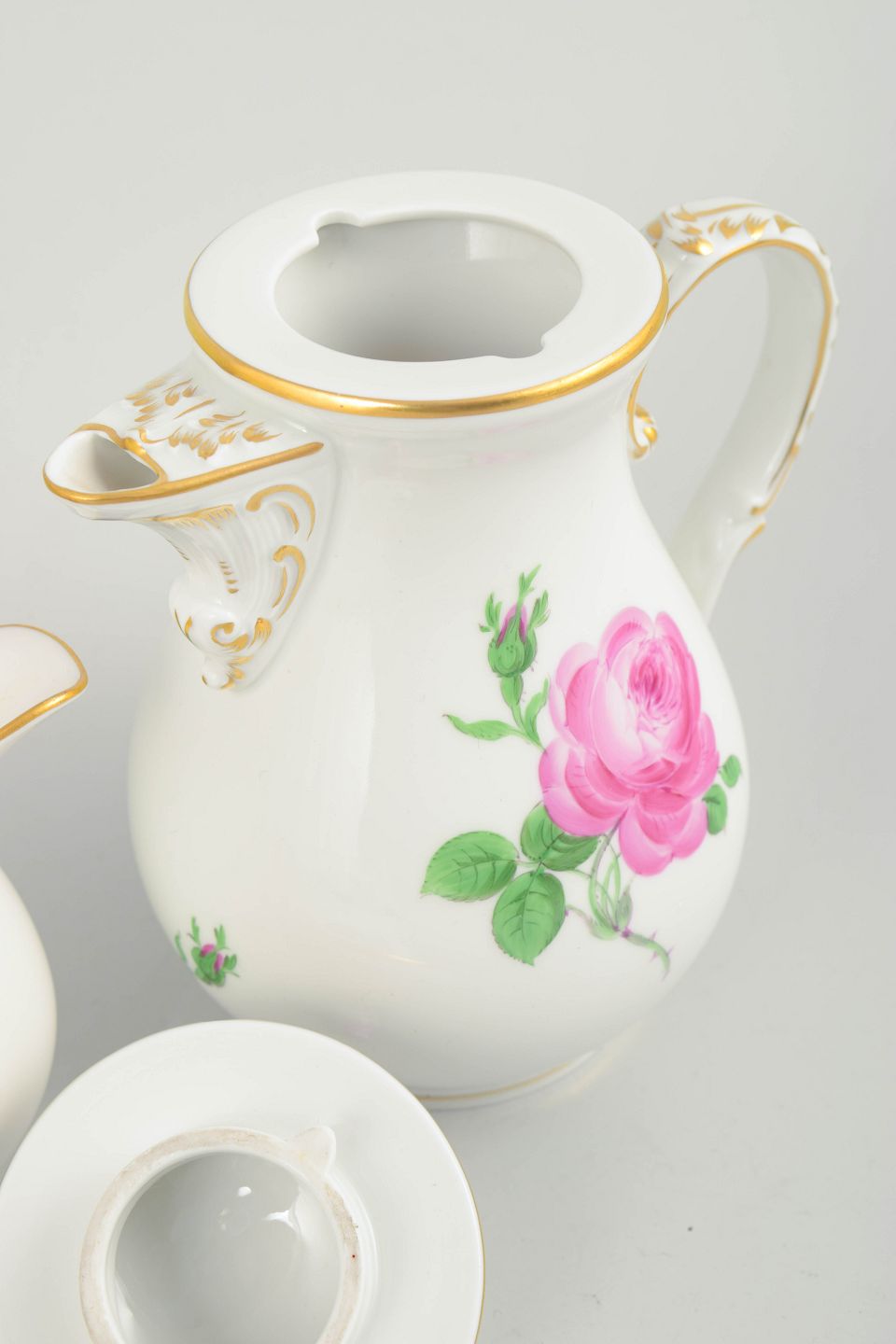 Meissen, lille kaffekande med låg og flødekande, serien Pink flower.Beschreibung: