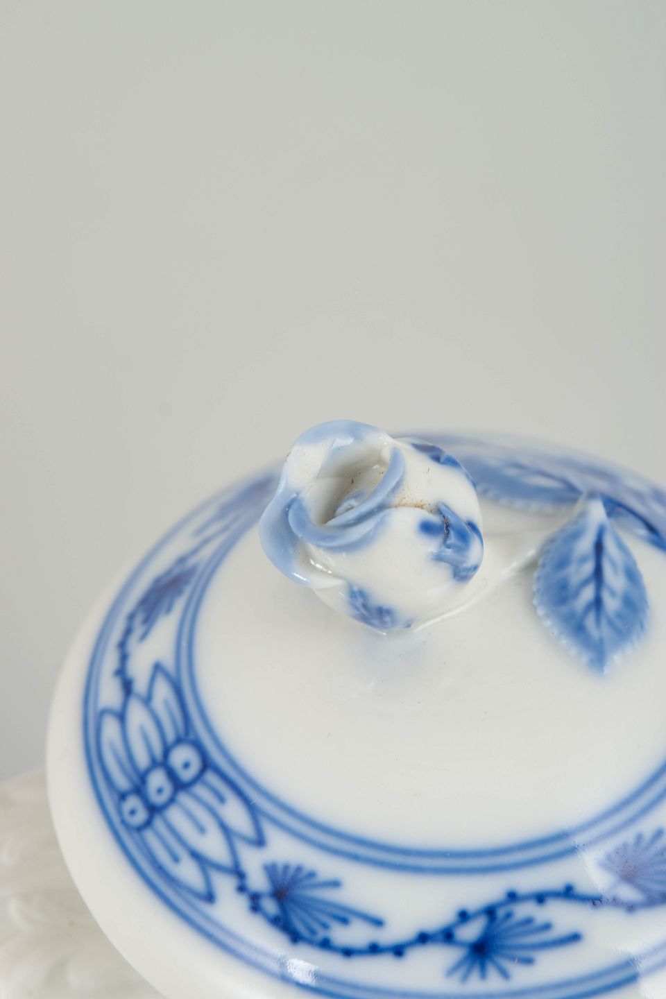 Meissen er en af Europas mest betydningsfulde porcelænsfabrikker, grundlagt i begyndelsen af 1700-tallet og kendt for høj teknisk kvalitet samt raffineret hånddekoration. Blå løg-mønsteret er blandt de mest ikoniske underglasurblå dekorationer og har været produceret og fortolket i flere varianter gennem 1900-tallet.