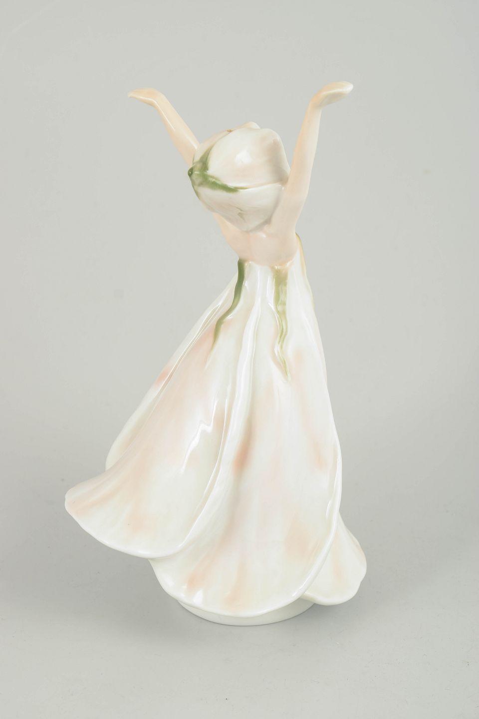 Bing & Grøndahl, Den Lille Idas Blomster figur.Porcelænsfigur forestillende Den Lille Idas Blomster, udført for H.C. Andersen Samlingen. Figuren er modelleret som en ung pige med løftede arme og svajende kjole i bløde hvide og rosa nuancer med diskrete grønne accenter. Undersiden er mærket Den Lille Idas Blomster, Nr. 1345/2500, hvilket angiver et begrænset oplag.