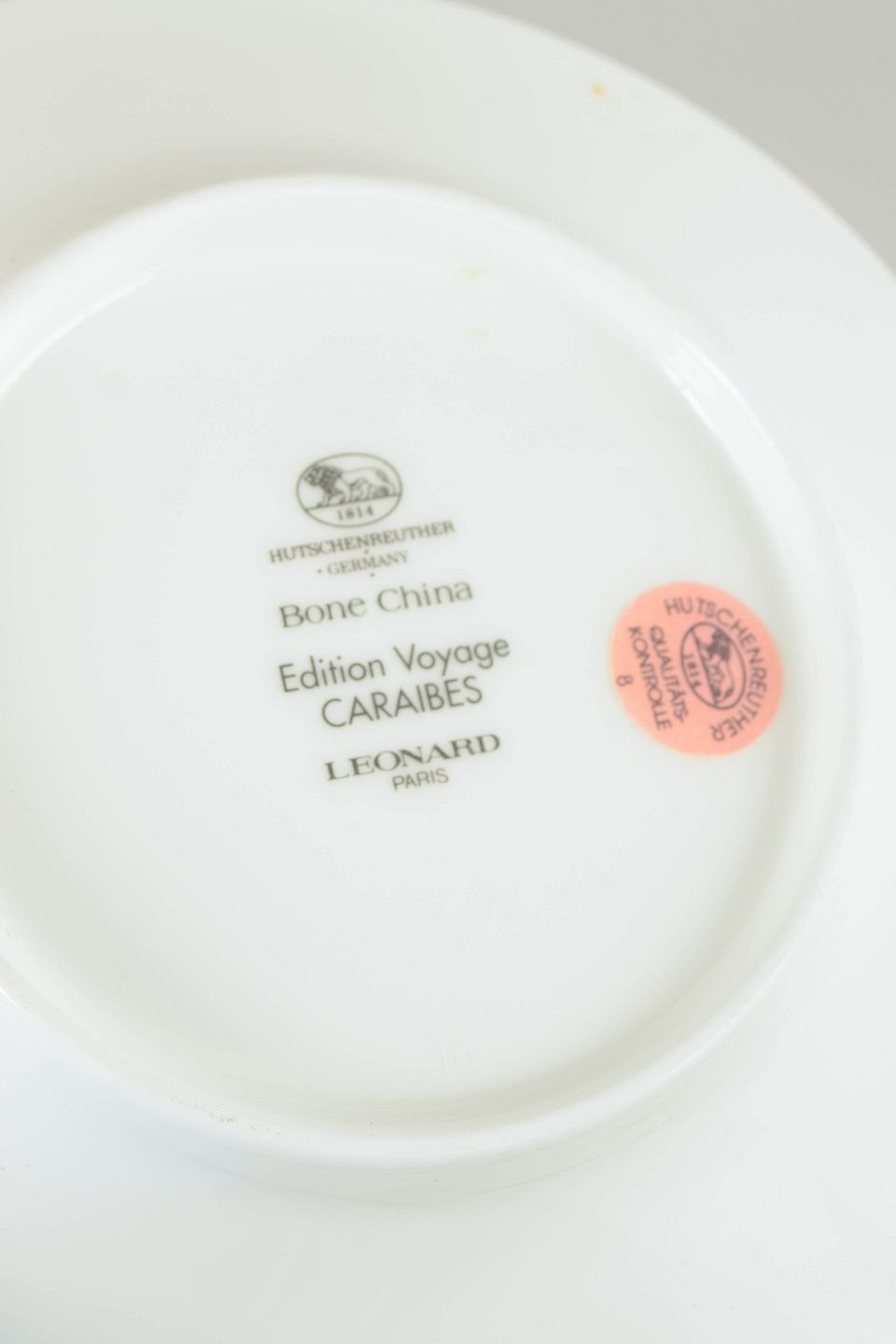 Hutschenreuther var en markant tysk porcelænsproducent, kendt for høj brændingskvalitet, præcis dekoration og et bredt sortiment af service- og gaveartikler. I det sene 1900-tal arbejdede fabrikken ofte med moderne, grafiske udtryk og internationale motiver, hvor porcelænets lethed og styrke gav et elegant og raffineret præg til både hverdags- og selskabsservice.